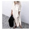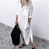 Shirt Long White Dress Women Casual Long Sleeve Side Split Button Dresses 2023 Summer Female Elegant Pocket Loose Dresses Robe