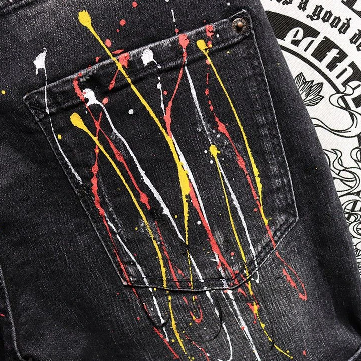 Short Jeans Pants for Men Multi Color Graphic Man Denim Shorts Original Thin Distressed Xl Retro Streetwear Jorts New In Rude