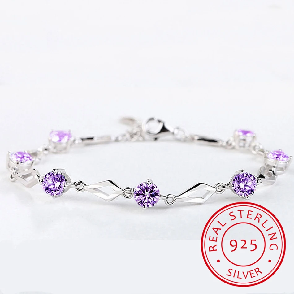 Silver 925 Jewelry Bracelets for Women Trendy Amethyst 925 Sterling Silver Bracelet Charm Women Wedding Bracelet Gift