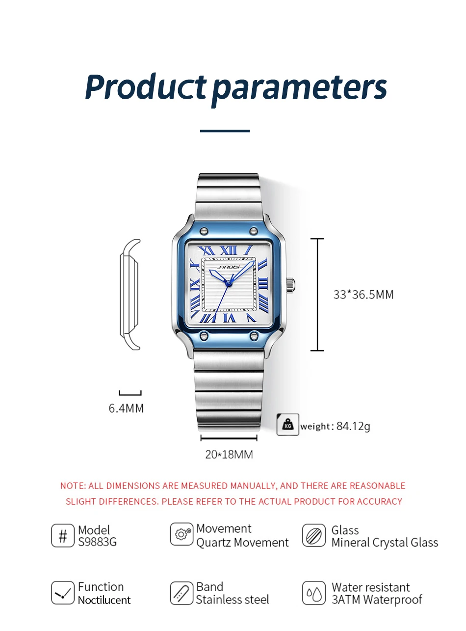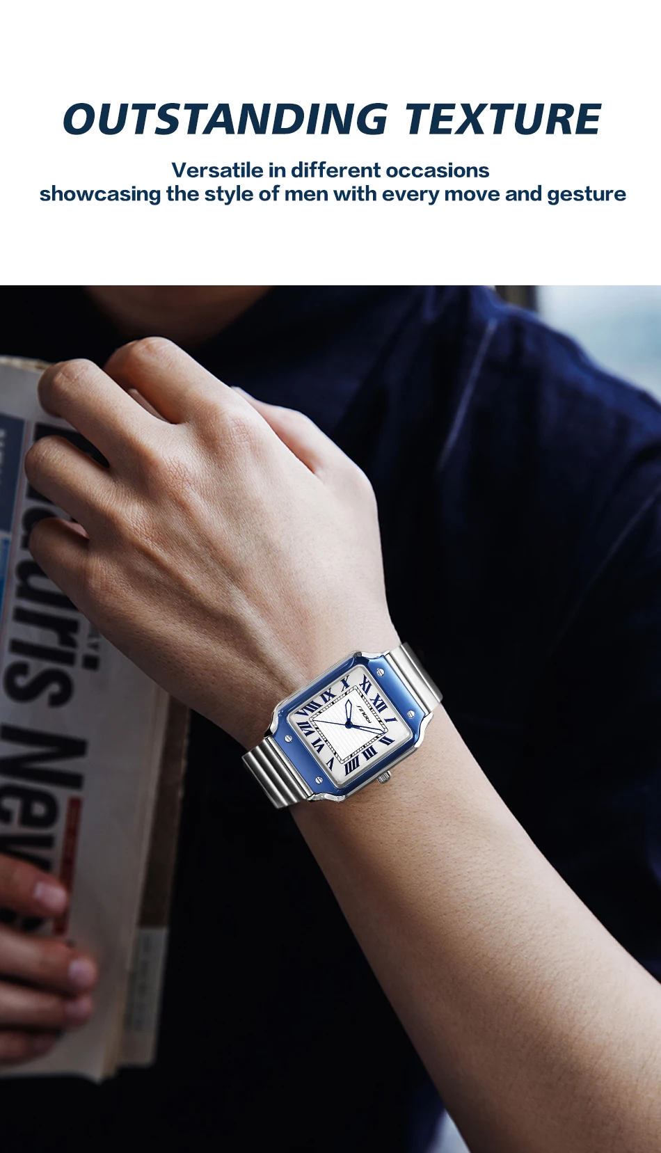 SINOBI Casual Design Men’s Quartz Watches Fashion Stainless Steel Man’s Wristwatches Business Square Male Relogio Masculino