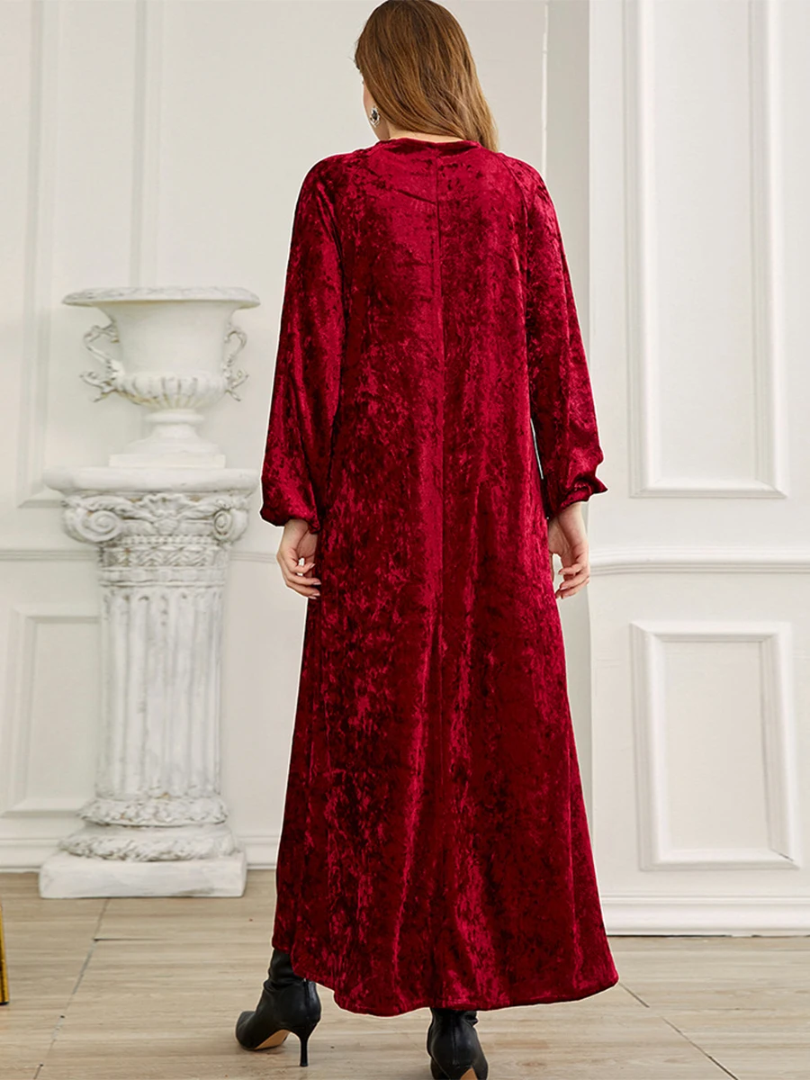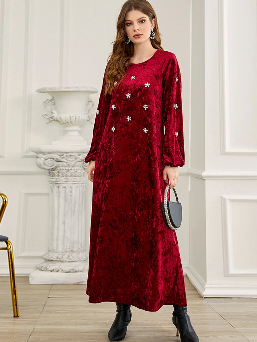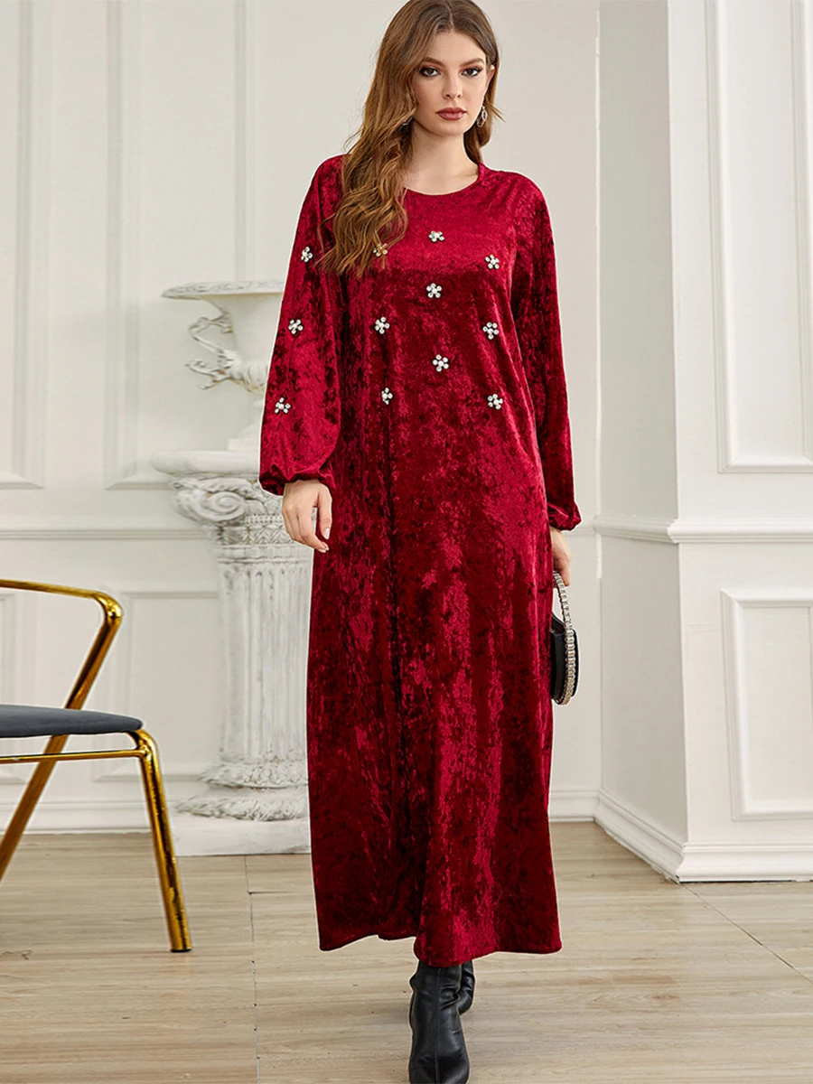 Siskakia Autumn Winter Velvet Evening Party Dresses Fashion Diamonds Elegant Abayas Long Sleeve O-Neck kabaya Saudi Dubai Gown