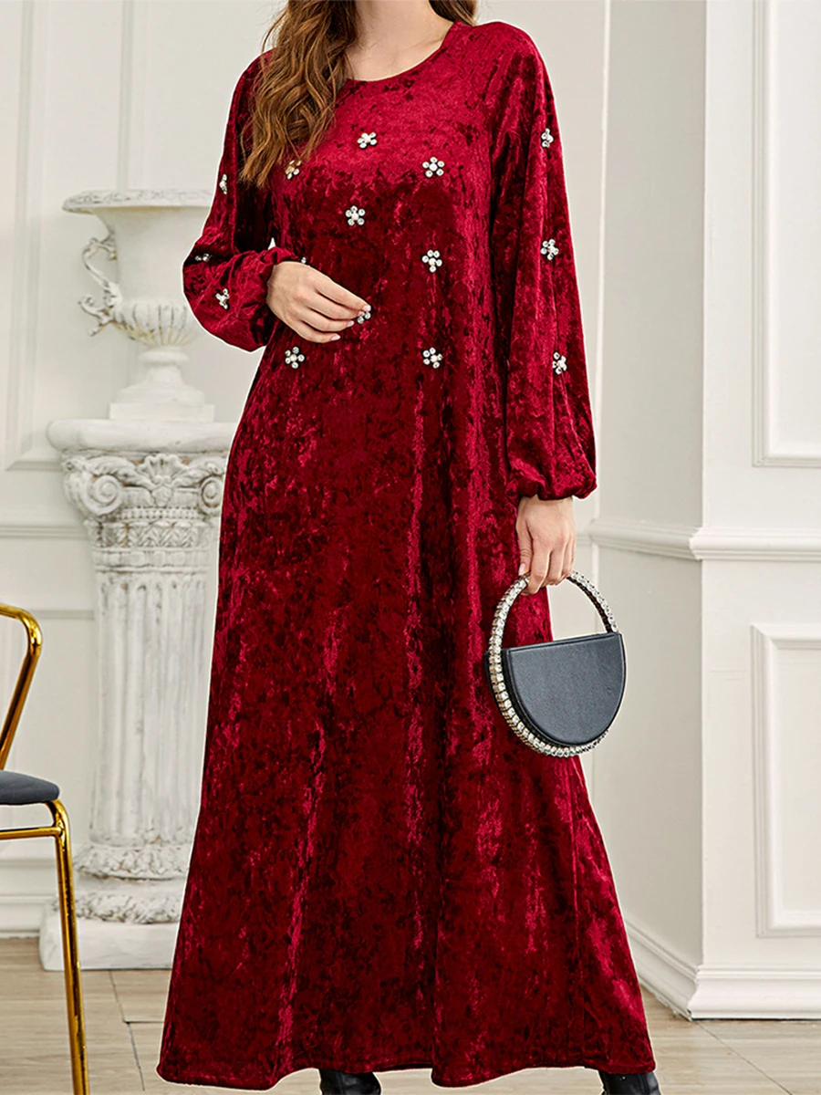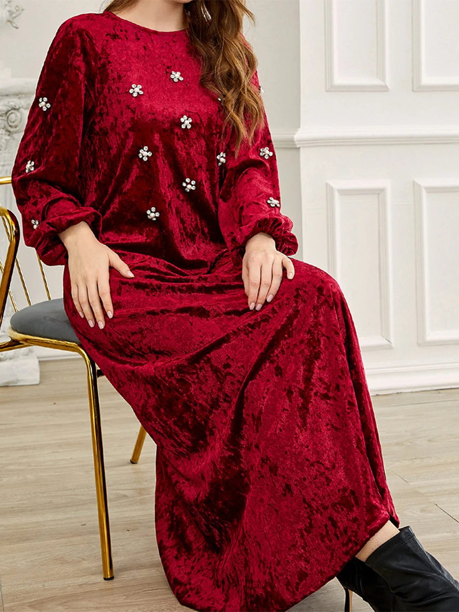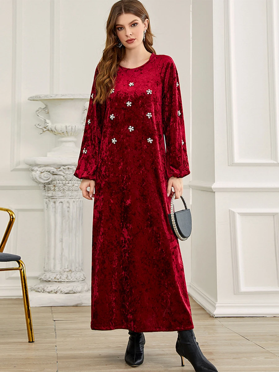 Siskakia Autumn Winter Velvet Evening Party Dresses Fashion Diamonds Elegant Abayas Long Sleeve O-Neck kabaya Saudi Dubai Gown