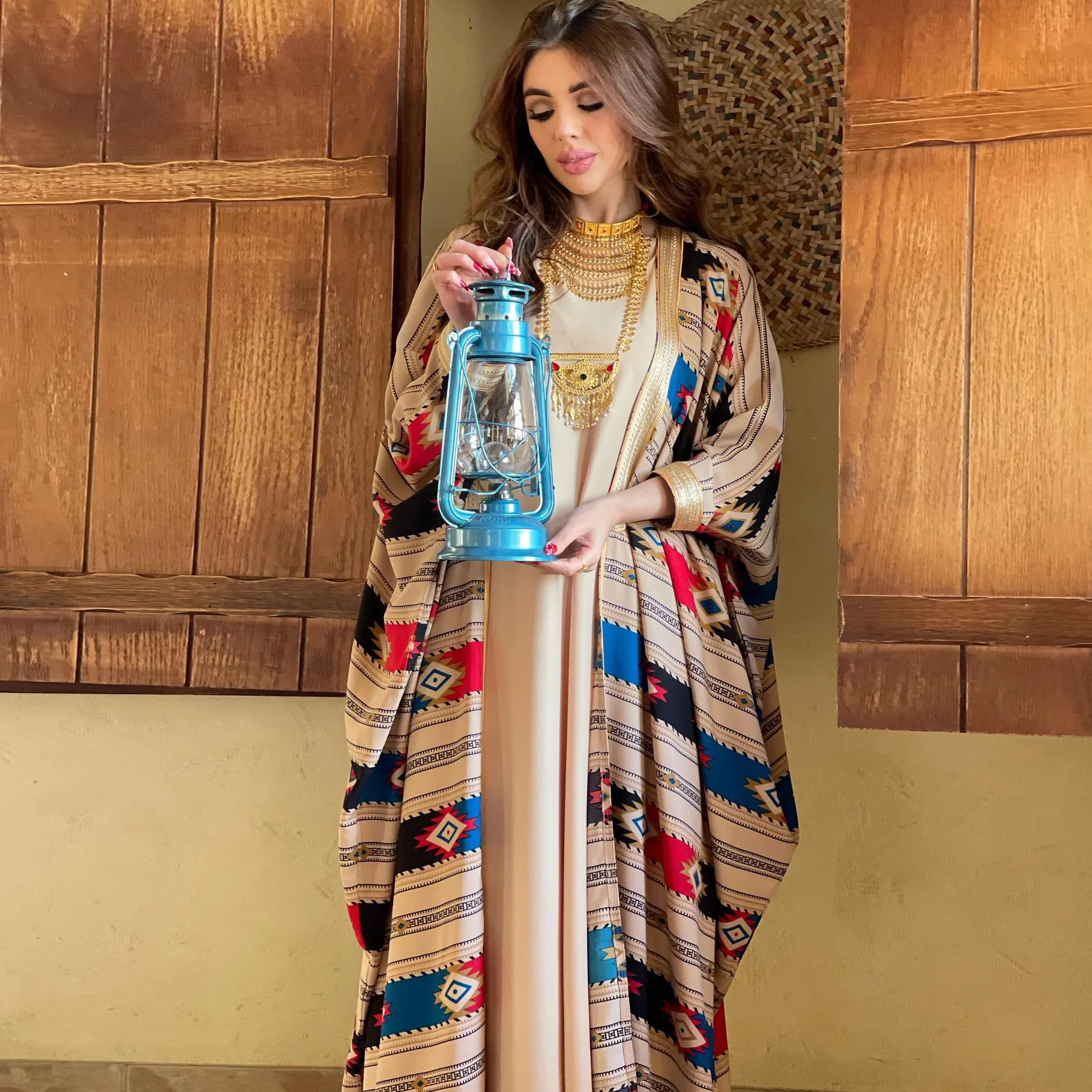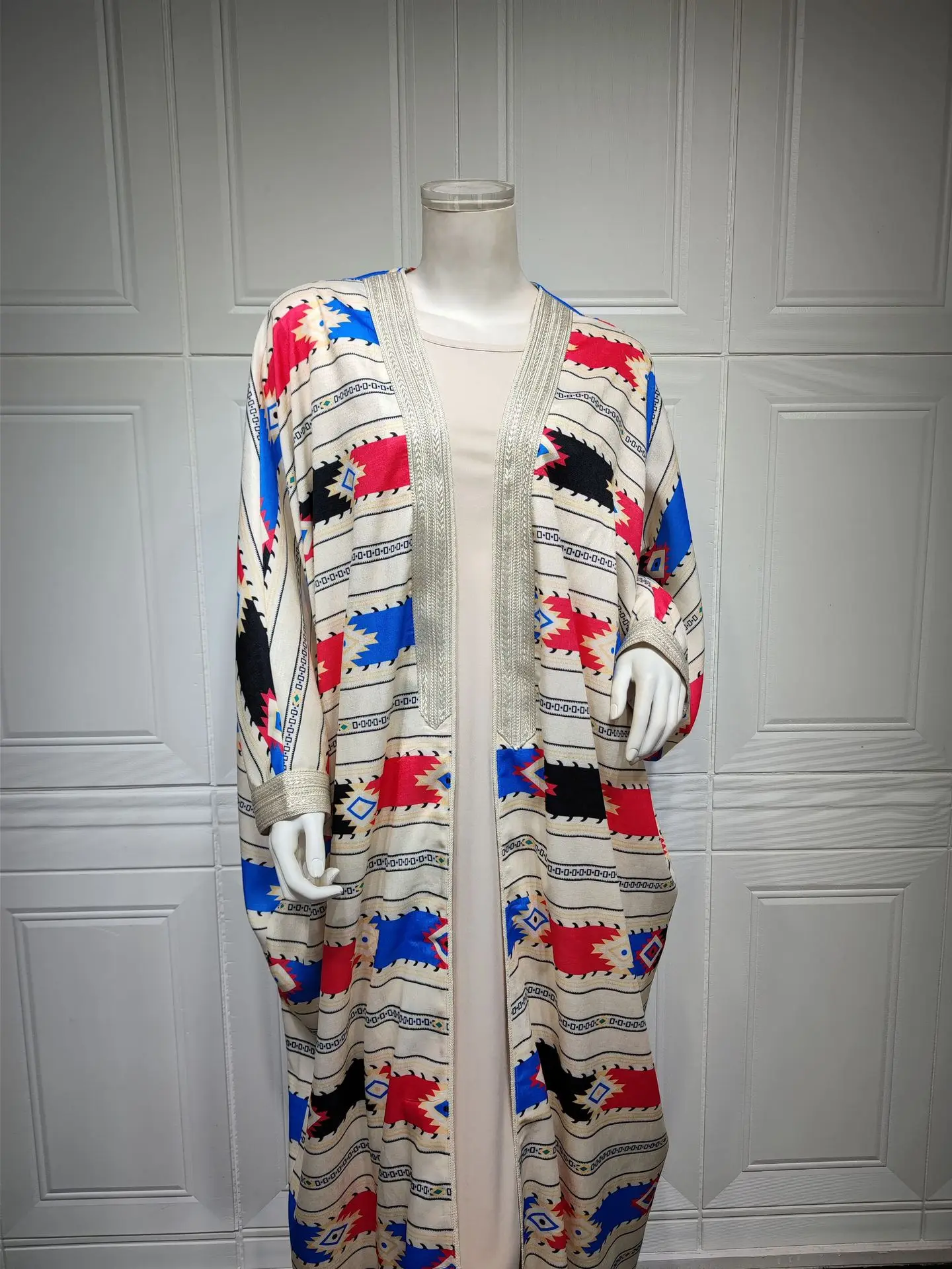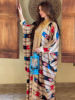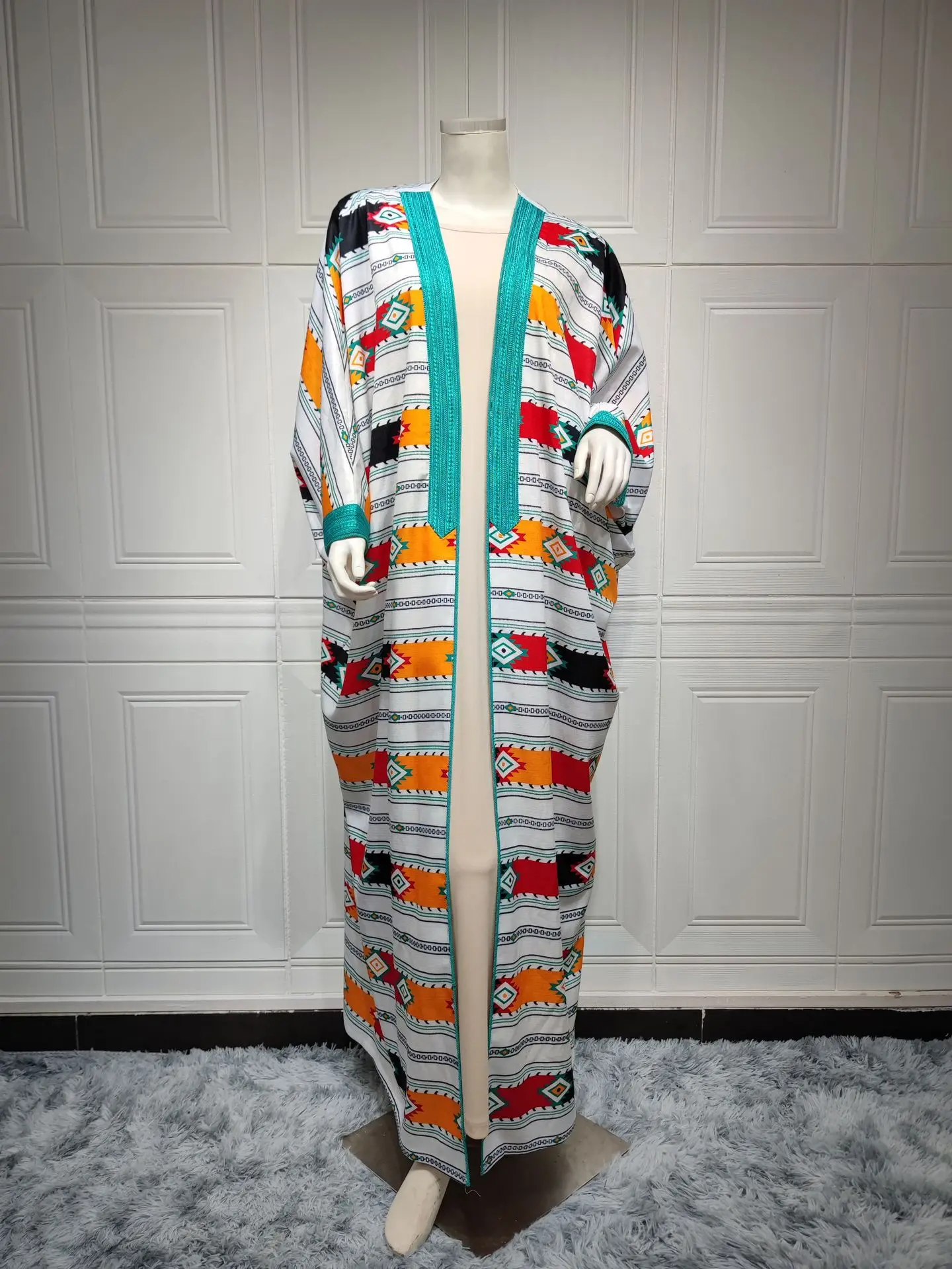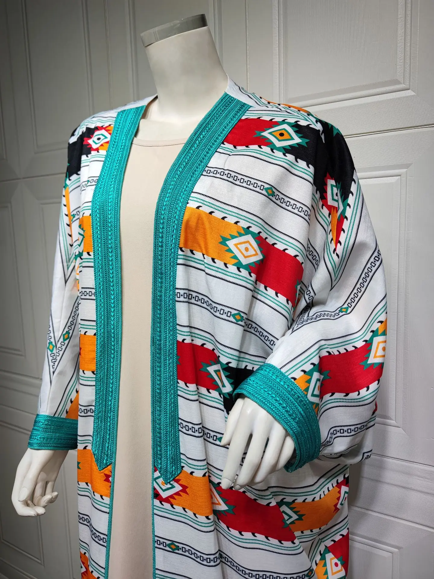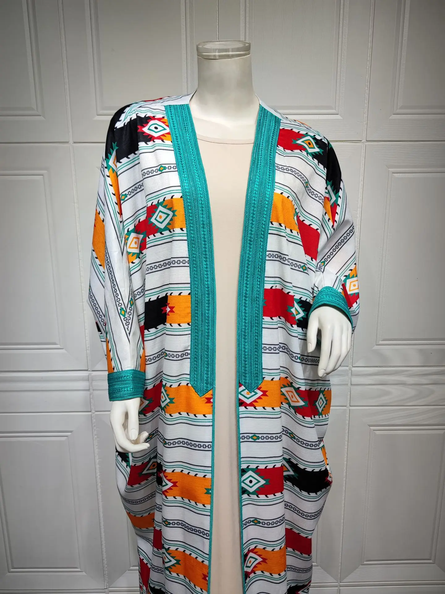 Siskakia Two Pieces Muslim Abaya Dress Set Colorful Geometric Stripes Print Moroccan Kaftan Dubai Turkey Arab Oman Qatar Robe