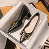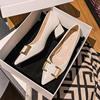 Size 35-43 Women Pointed Toe Leather Flats shoes Heels Pumps Designer Style Metal Buckle Office Lady Slip on Shoe D90-2
