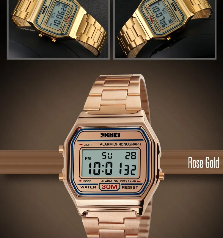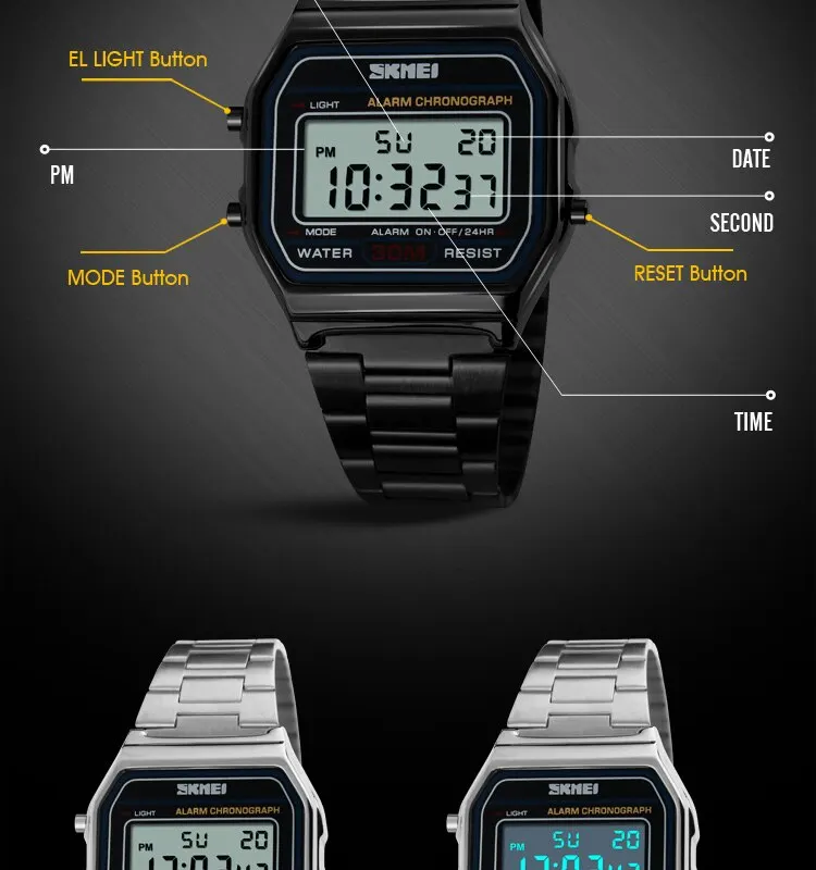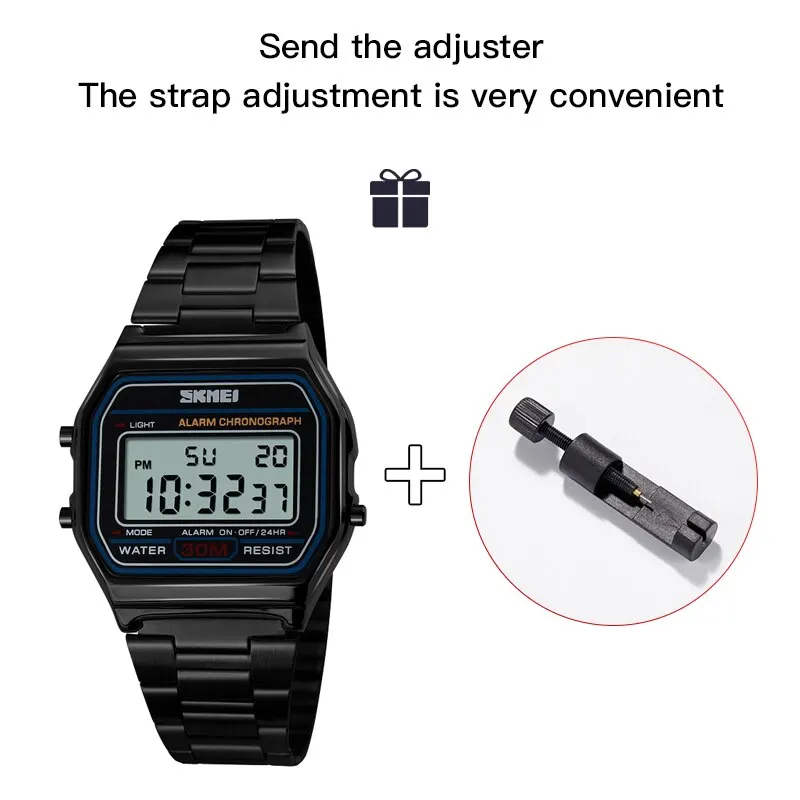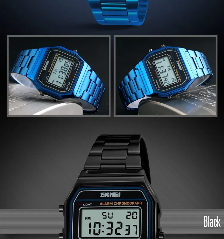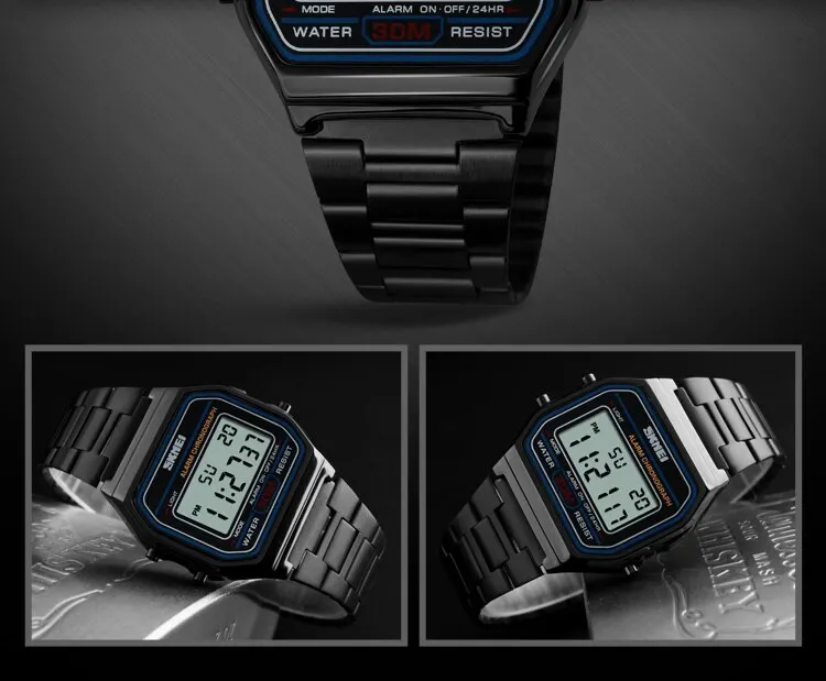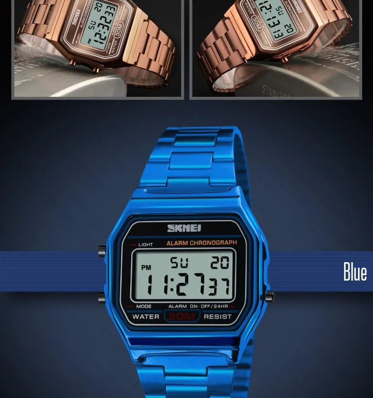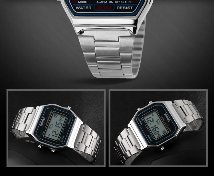 Skmei Top Brand Luxury Stainless Steel Chrono Sport Watches Men Back Light Display Digital Wristwatch 3Bar Waterproof Reloj Hom