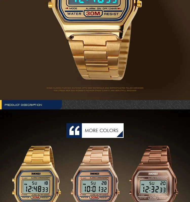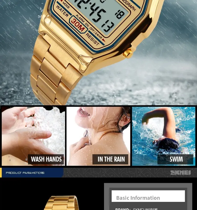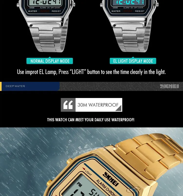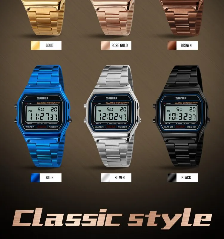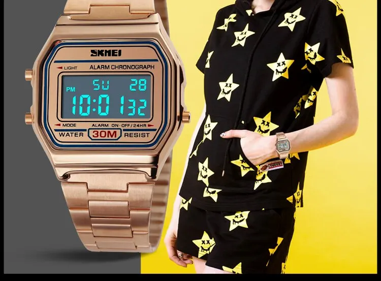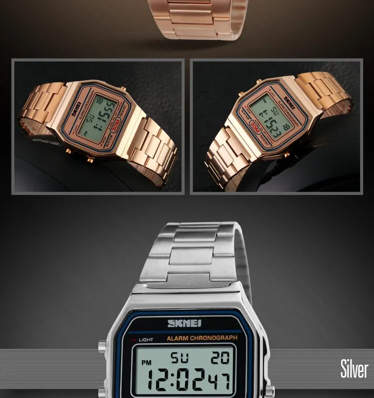 Skmei Top Brand Luxury Stainless Steel Chrono Sport Watches Men Back Light Display Digital Wristwatch 3Bar Waterproof Reloj Hom