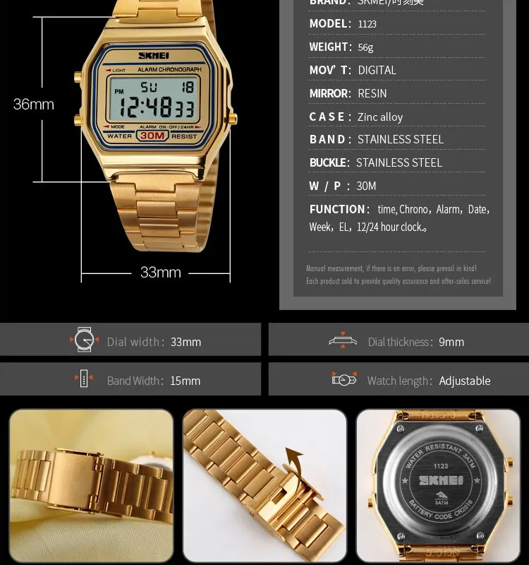 • Digital Movement :The watch features a digital movement, making it easy to read the time and date.