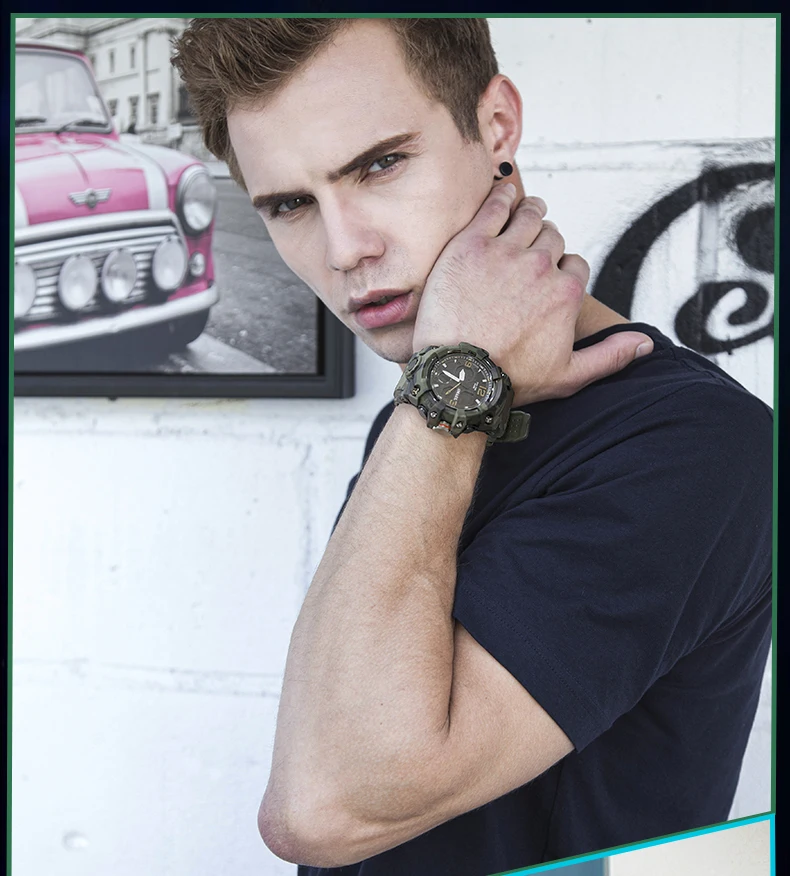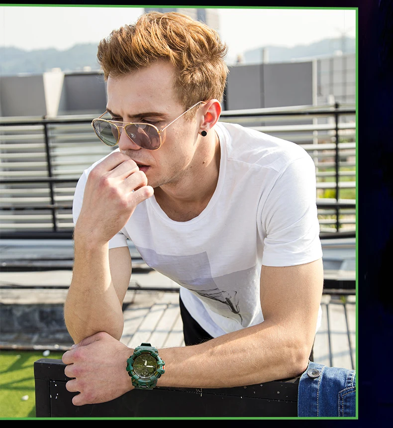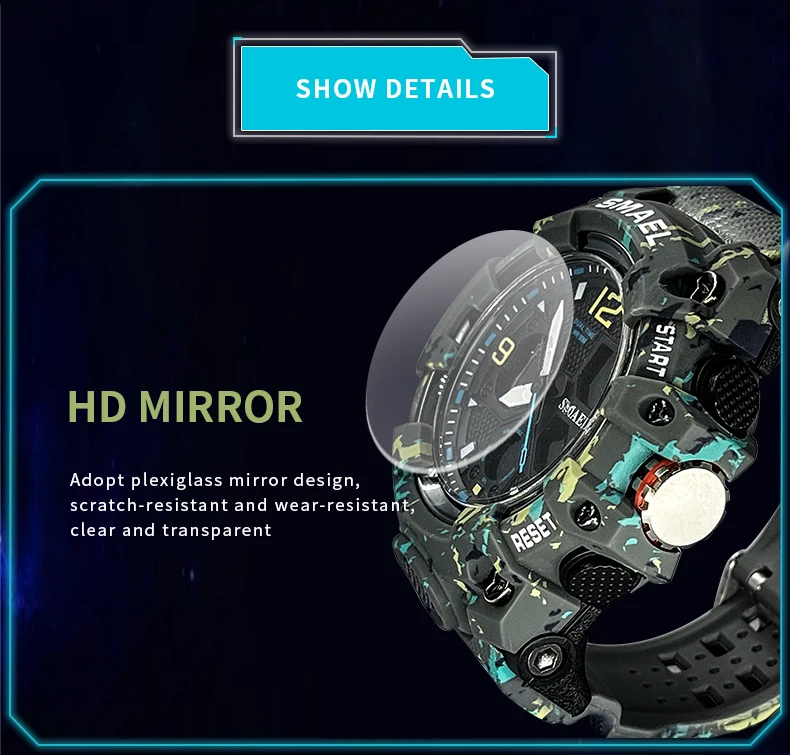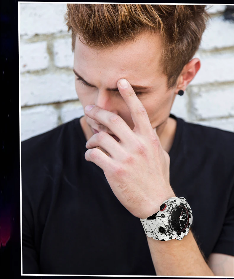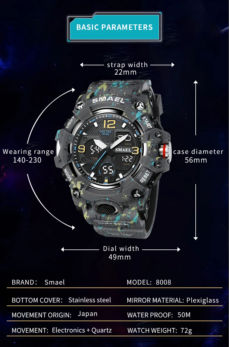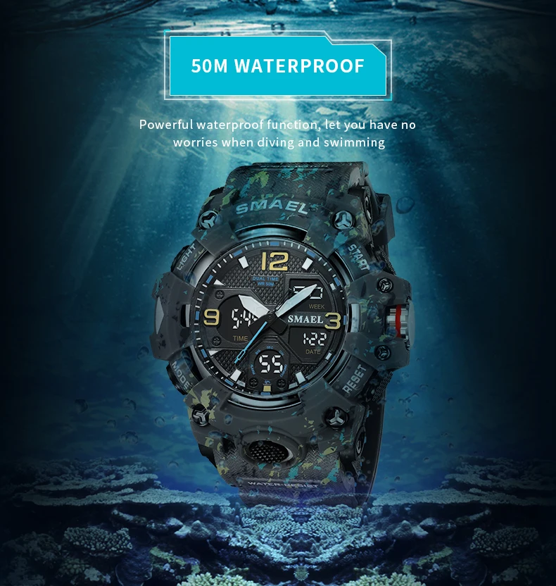 SMAEL Camouflage Sports Digital Watch for Men Auto Date Chronograph Quartz Analog Watches Luxury LED Electronic Wristwatch 8008