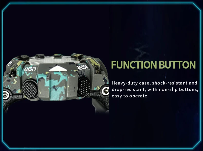 Water resistant depth: 5ATM(Don’t press any buttons when you swim with the watch)