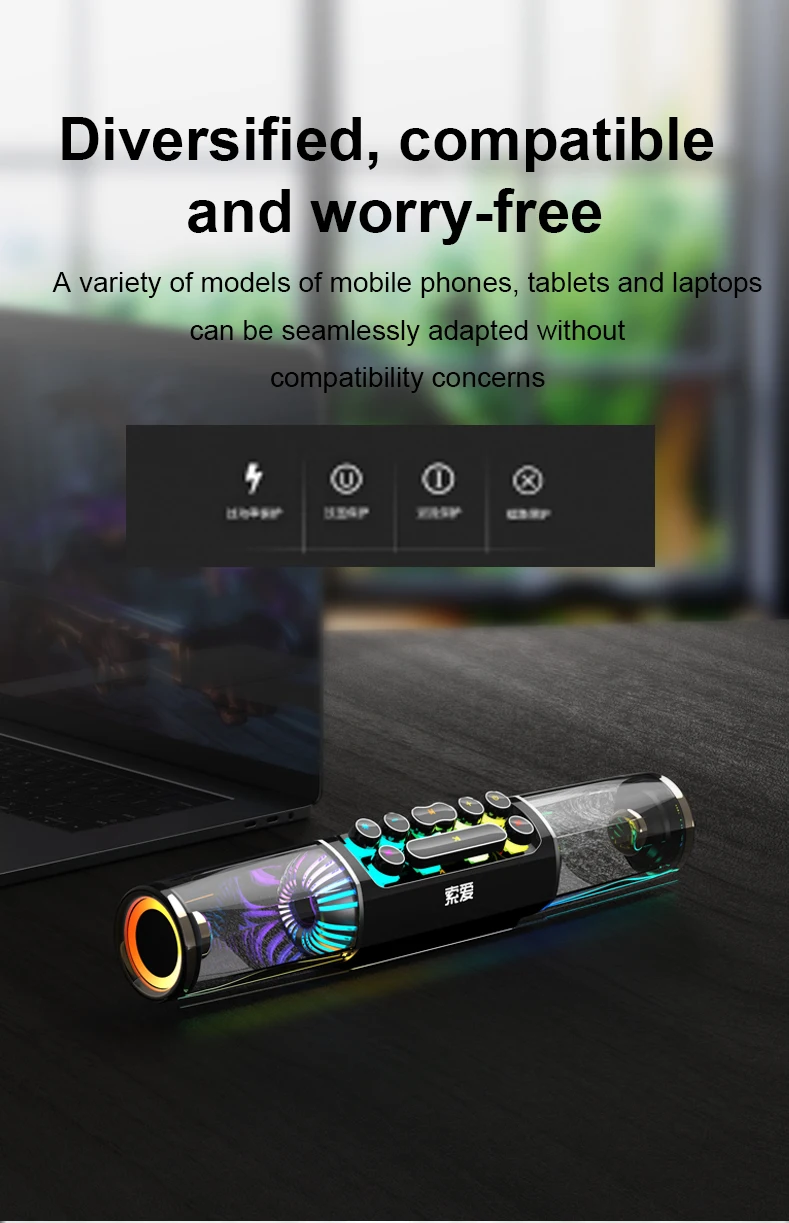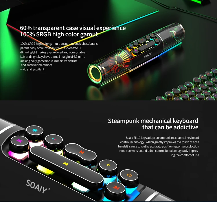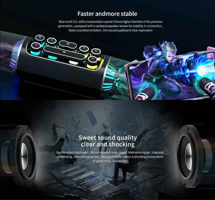 SOAIY SH19SLED Lighting Game Super Bass Game Computer Speaker High Power RGB Game Bluetooth Speaker Bar Stereo Caixa De Som