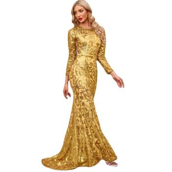 High Quality Gold Prom Dresses For Women Long Sleeve Sequined Mermaid Long Luxury Evening Maxi Dress Elegant Party Wedding Guest