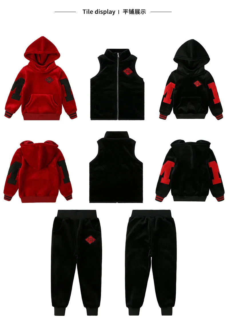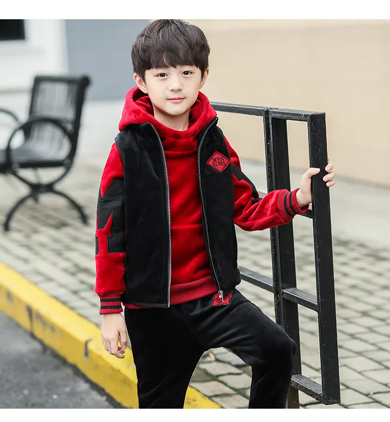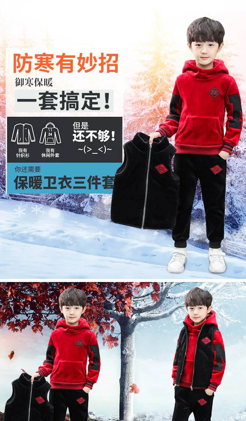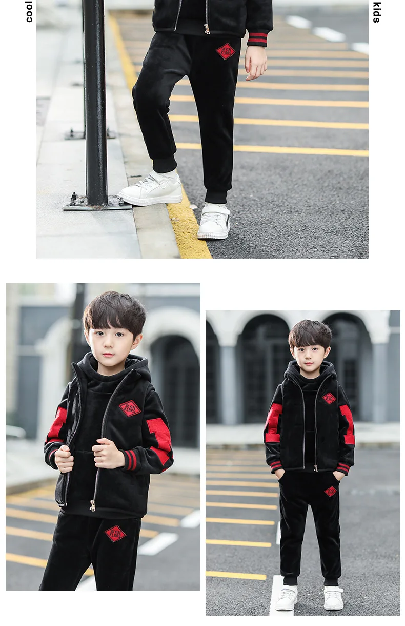 Sports Suit For Boys Girls Warm Clothing Letter Kids Vest + Hoodies + Pants Tracksuit For Kids Children’s Sportswear 4 6 8 12Y