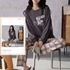Spring Autumn Big Size 5XL Women Polyester Pajamas Plaid Sleepwear Long-sleeved Homewear Sets Womens Simple Loose Casual Pijamas