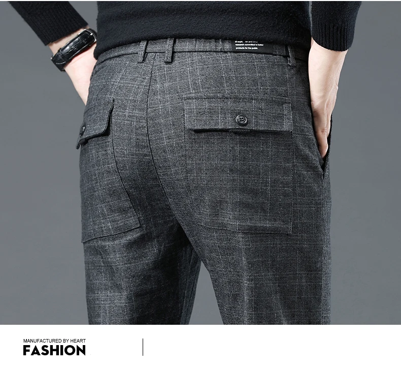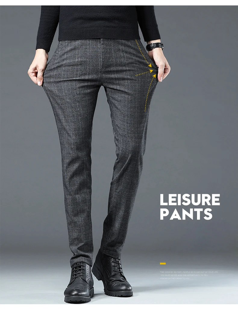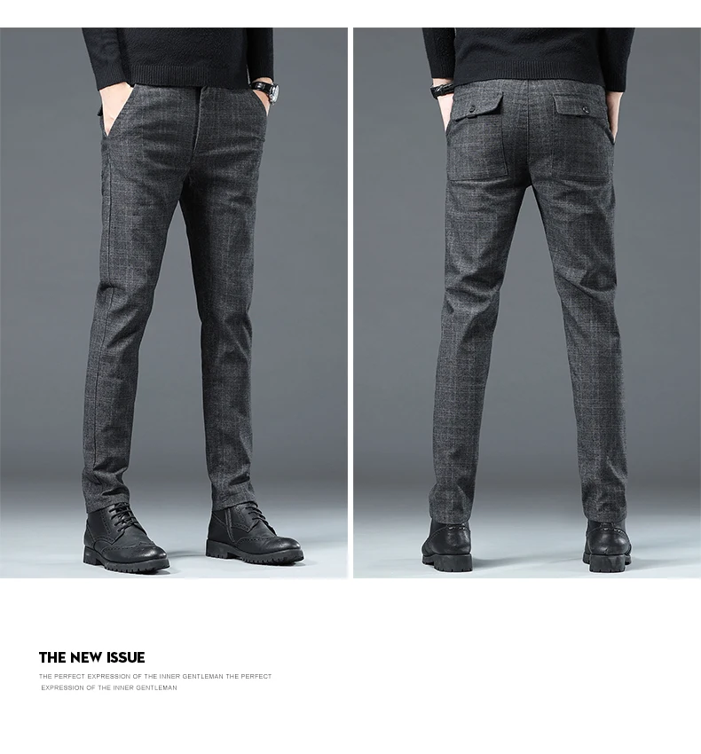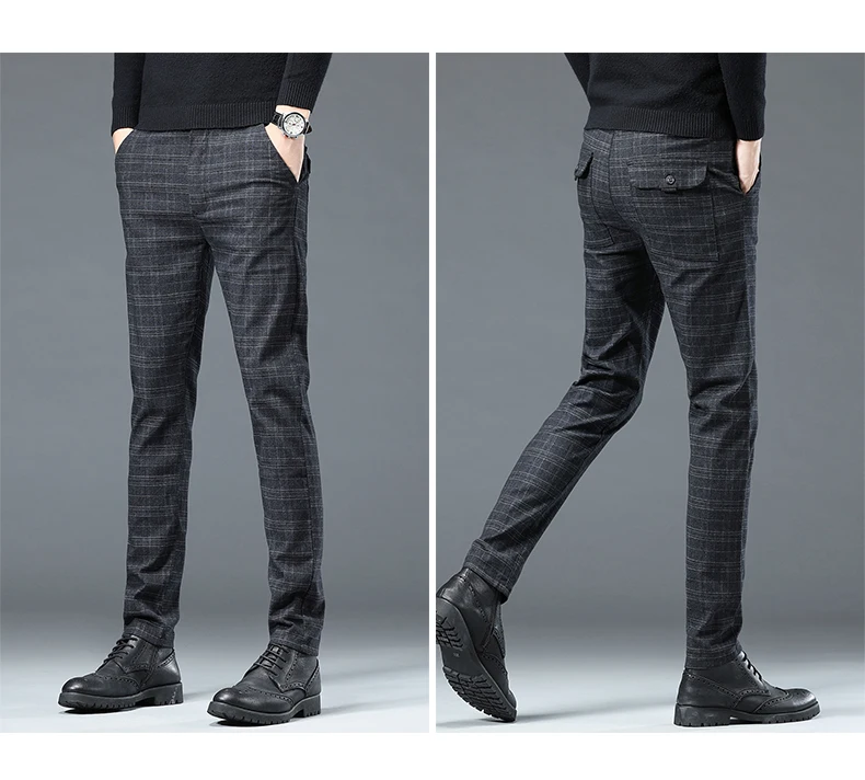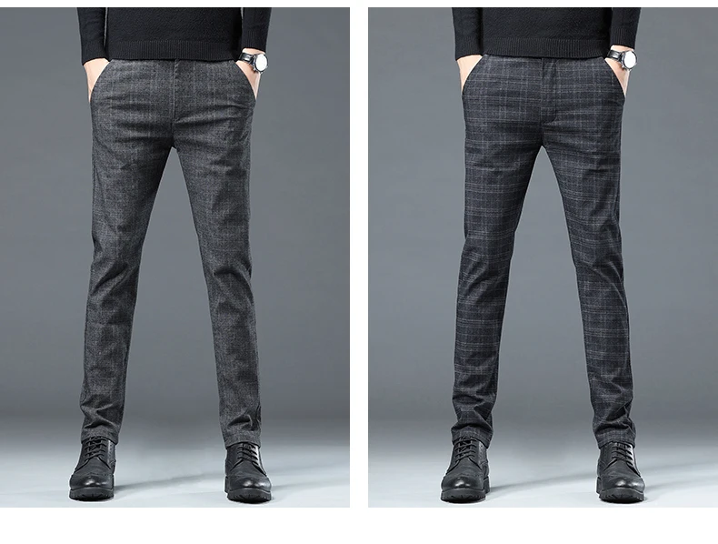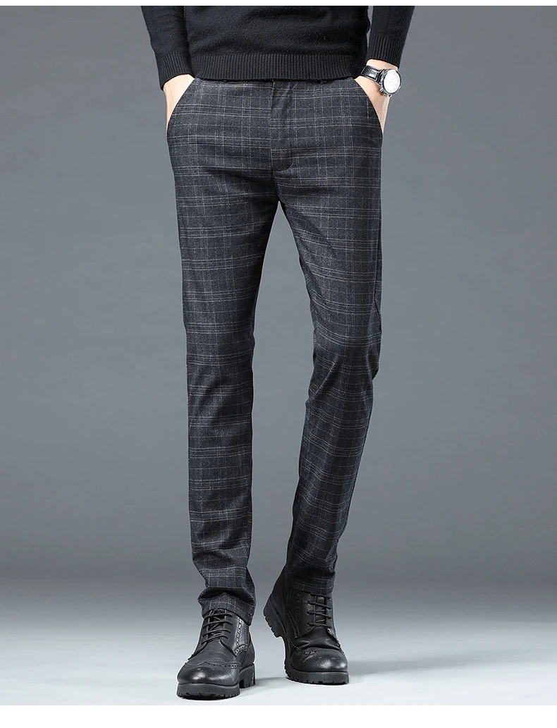Spring Autumn Korea Business Men Pants Cotton Comfortable Elastic Plaid Casual Fashion Trousers Male Suit Pant