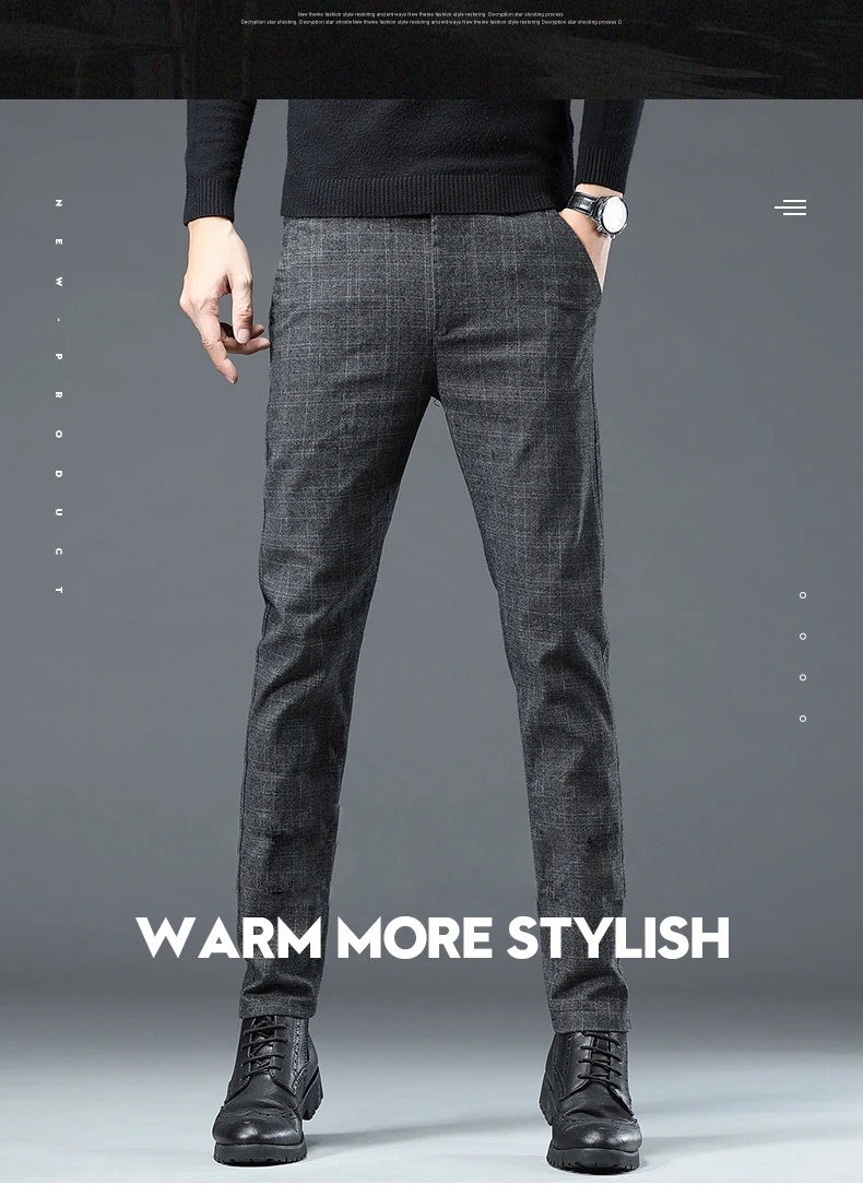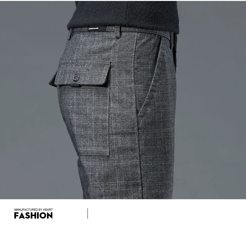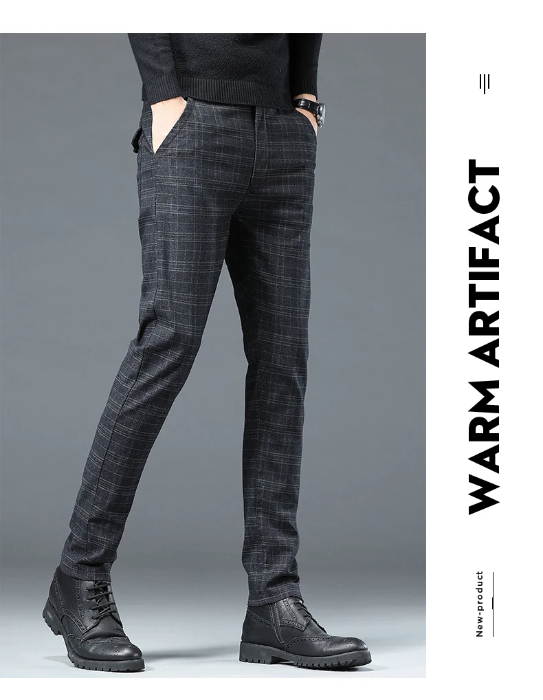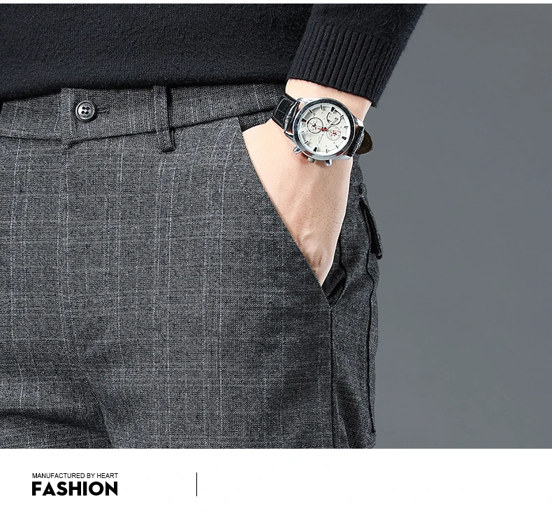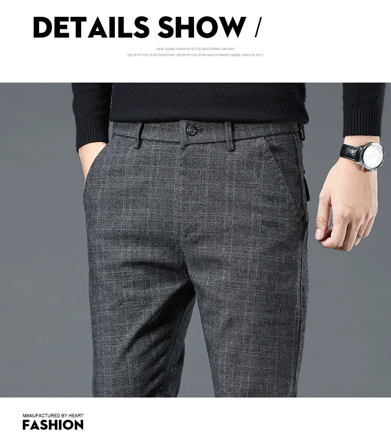 Spring Autumn Korea Business Men Pants Cotton Comfortable Elastic Plaid Casual Fashion Trousers Male Suit Pant