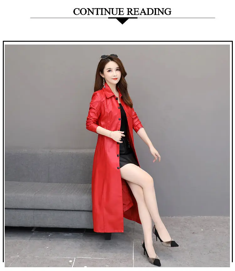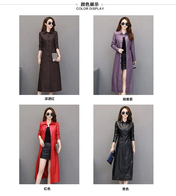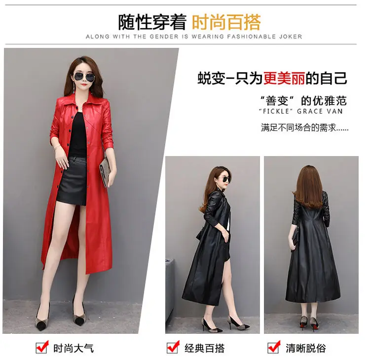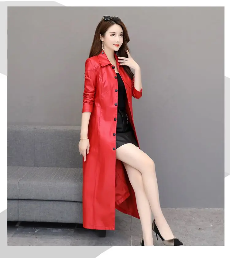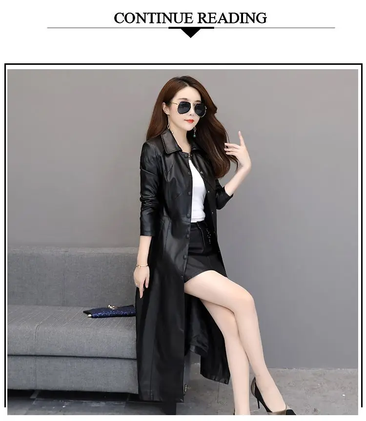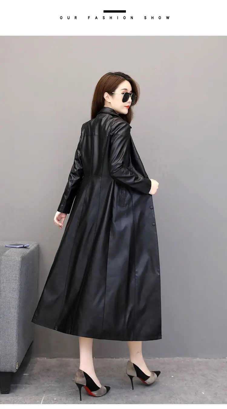 Spring autumn long black leather coat women long sleeve buttons slim fit Elegant leather jacket women 2023