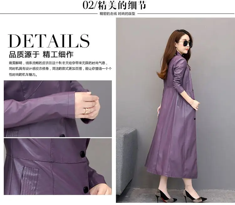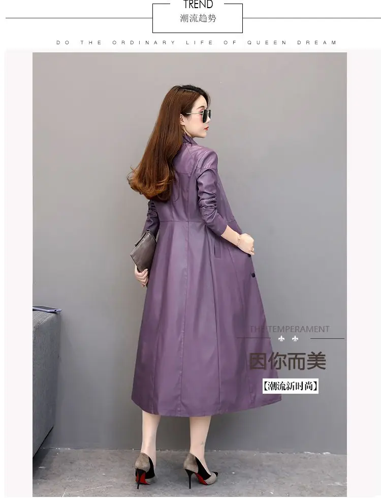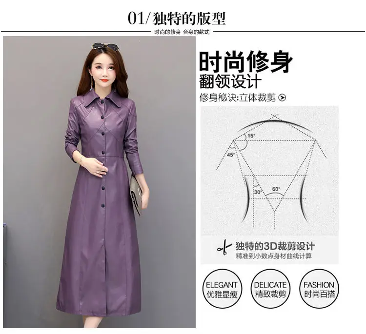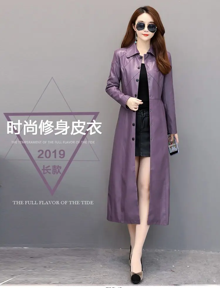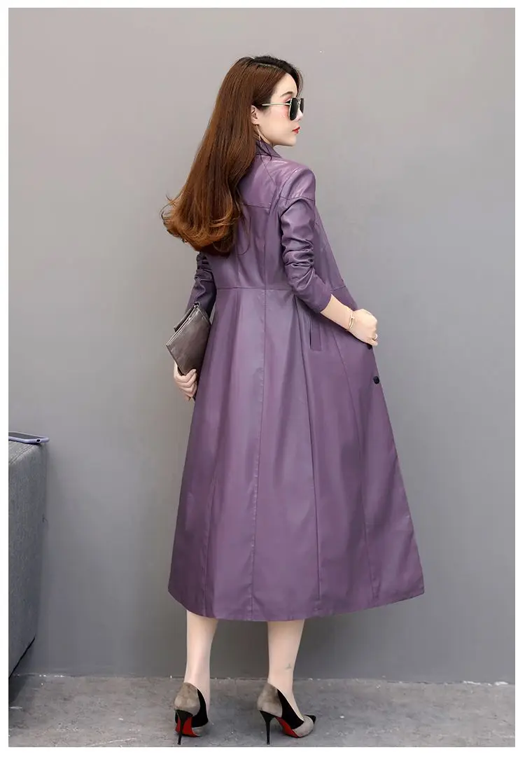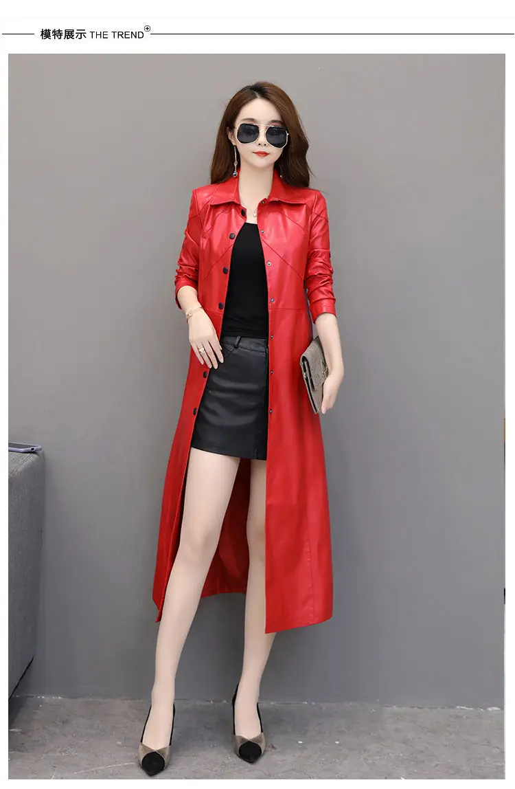 Spring autumn long black leather coat women long sleeve buttons slim fit Elegant leather jacket women 2023