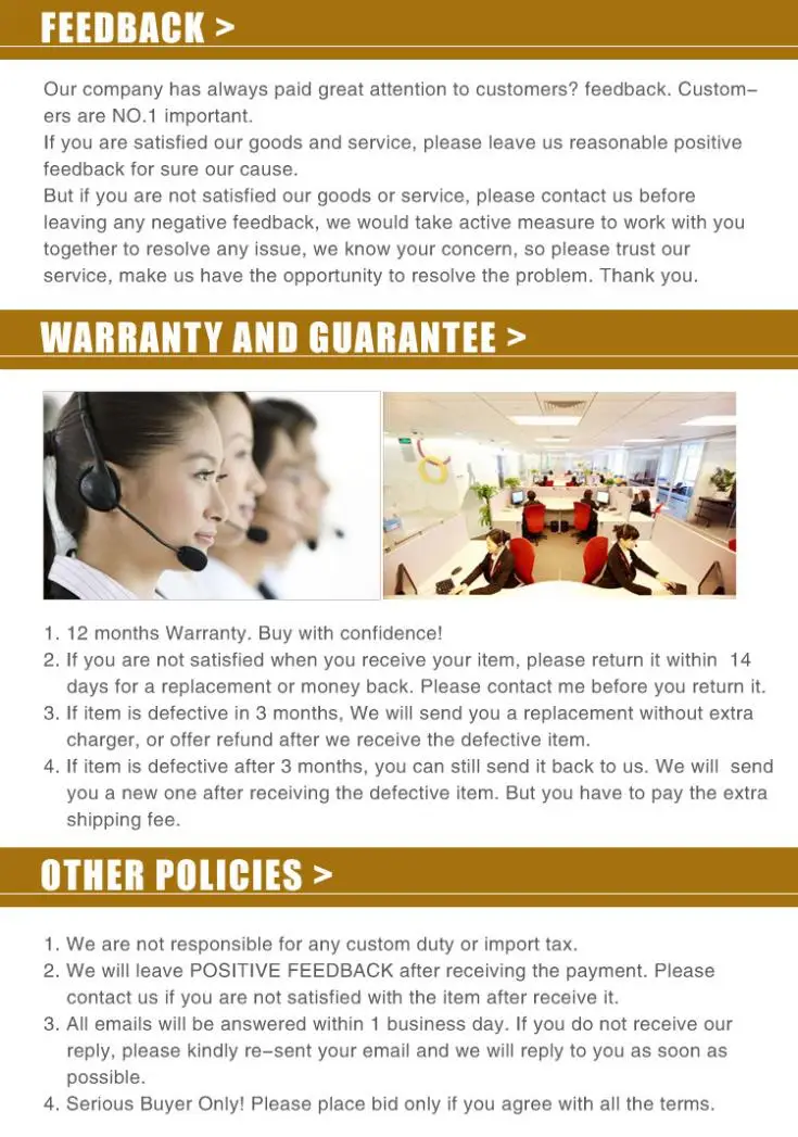 • If you did not receive the product within the guaranteed time( 45 days not including 2-5 day processing) you can request a refund or a reshipment.