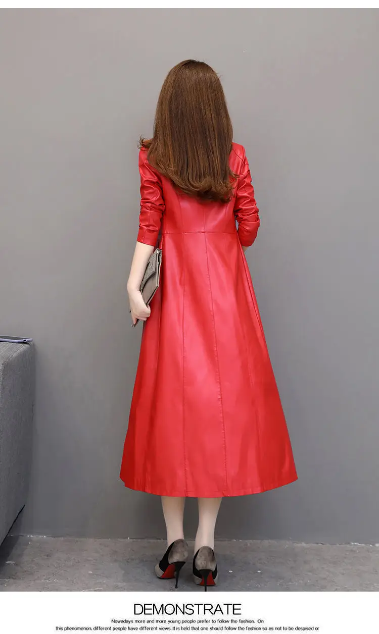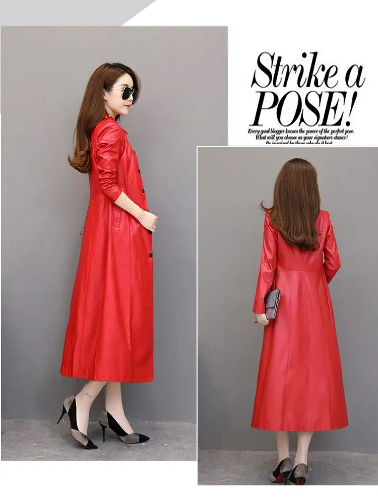 Spring autumn long black leather coat women long sleeve buttons slim fit Elegant leather jacket women 2023
