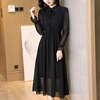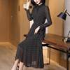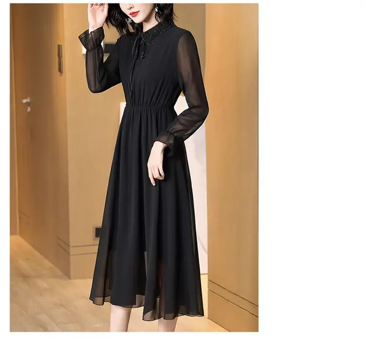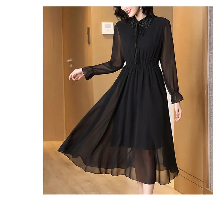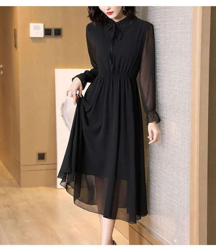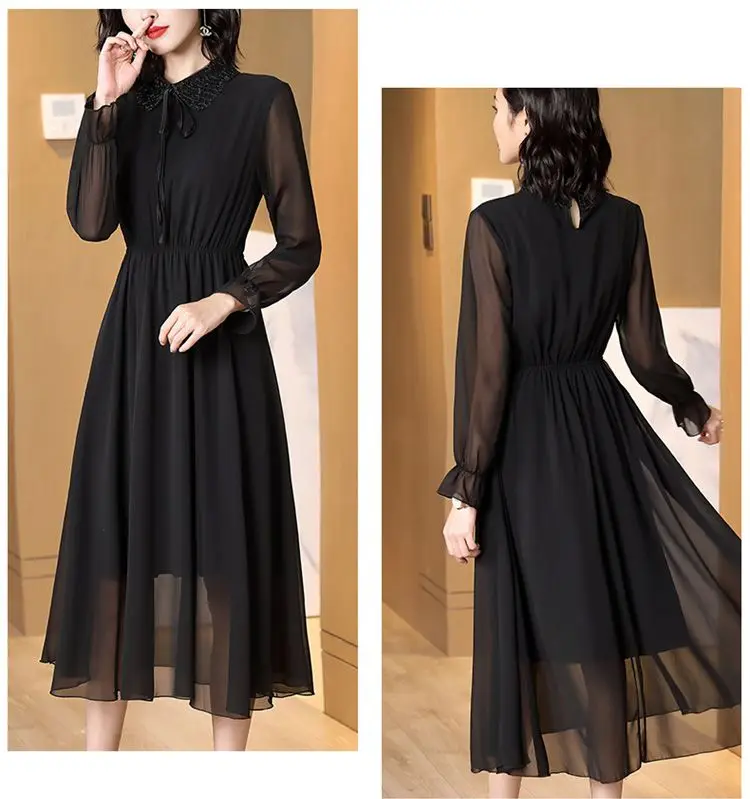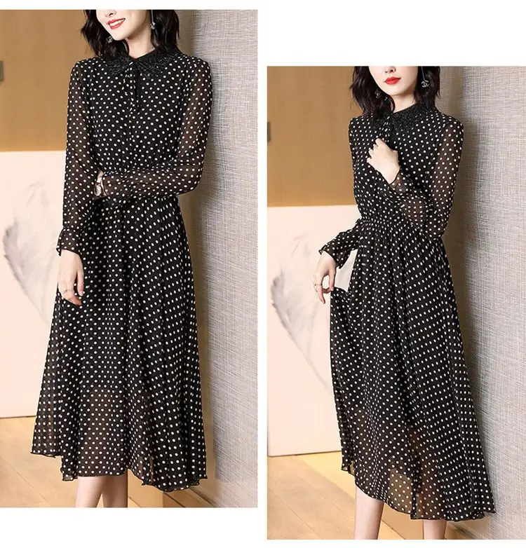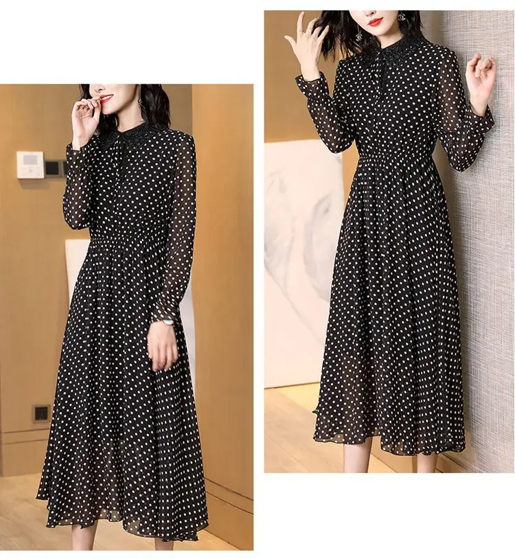 Spring Autumn Peter Pan Collar Beading Dresses Elegant A-Line Waist Women’s Clothing Drawstring Commute Polka Dot Midi Dress New