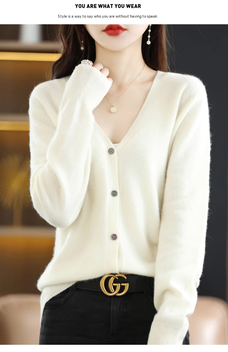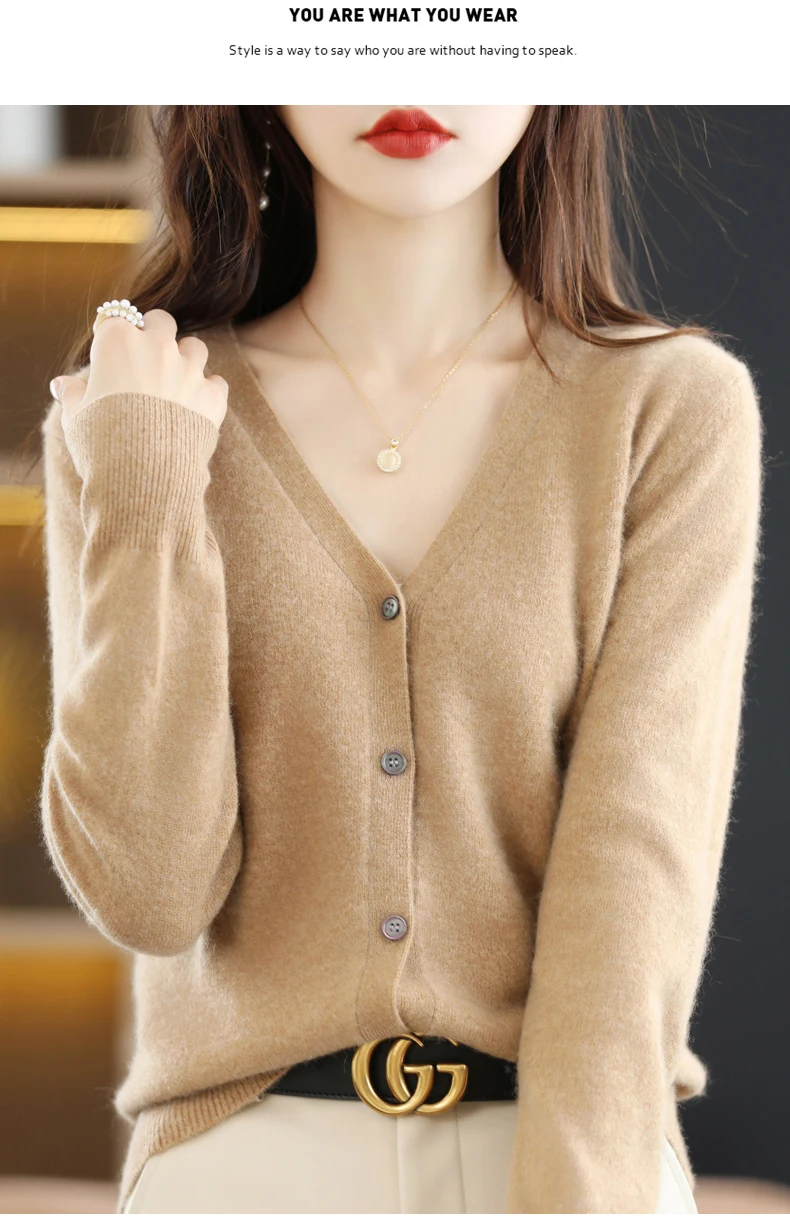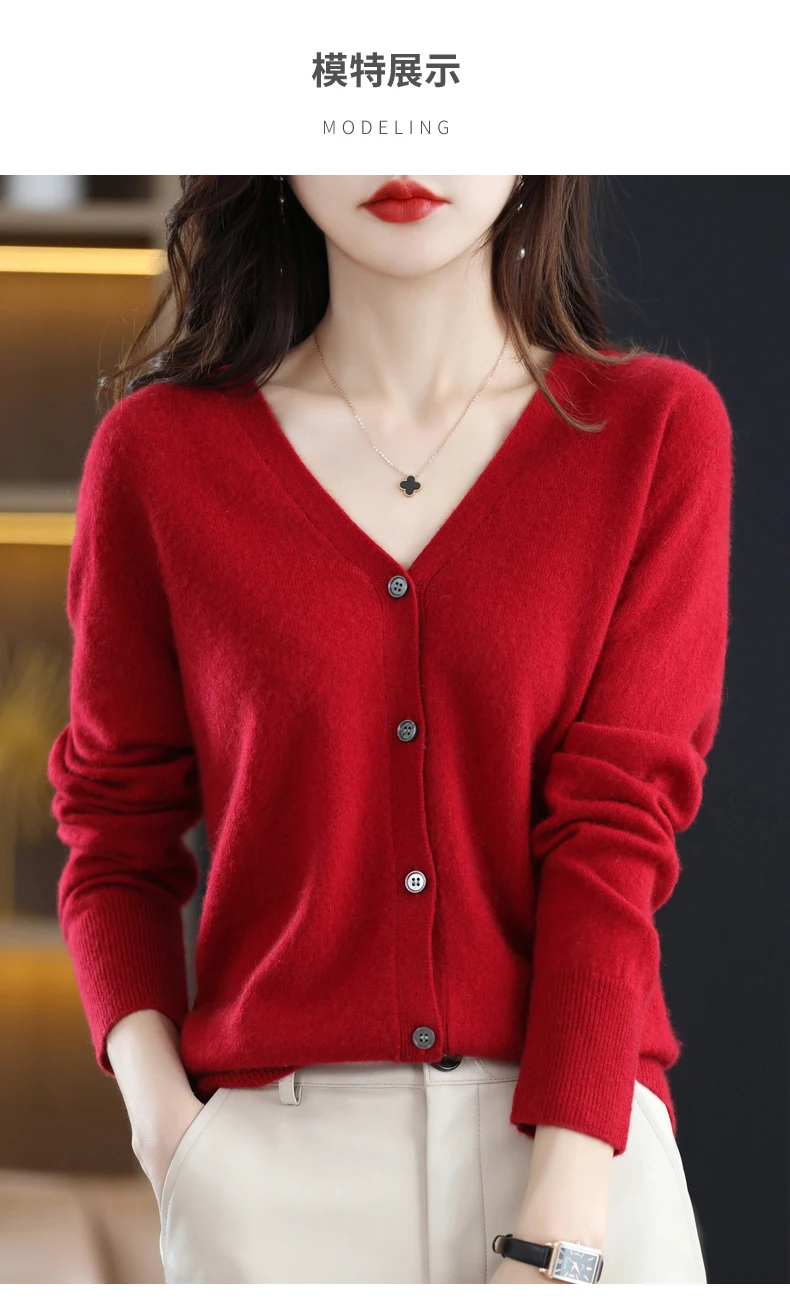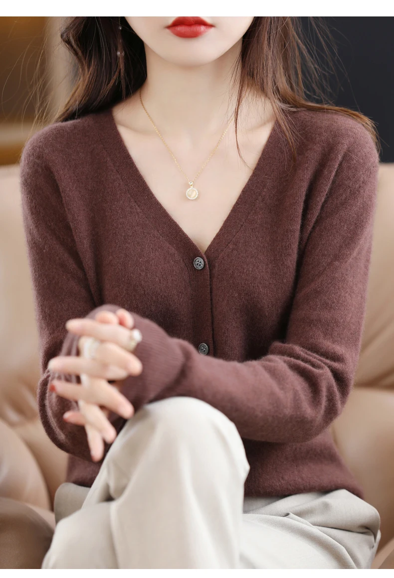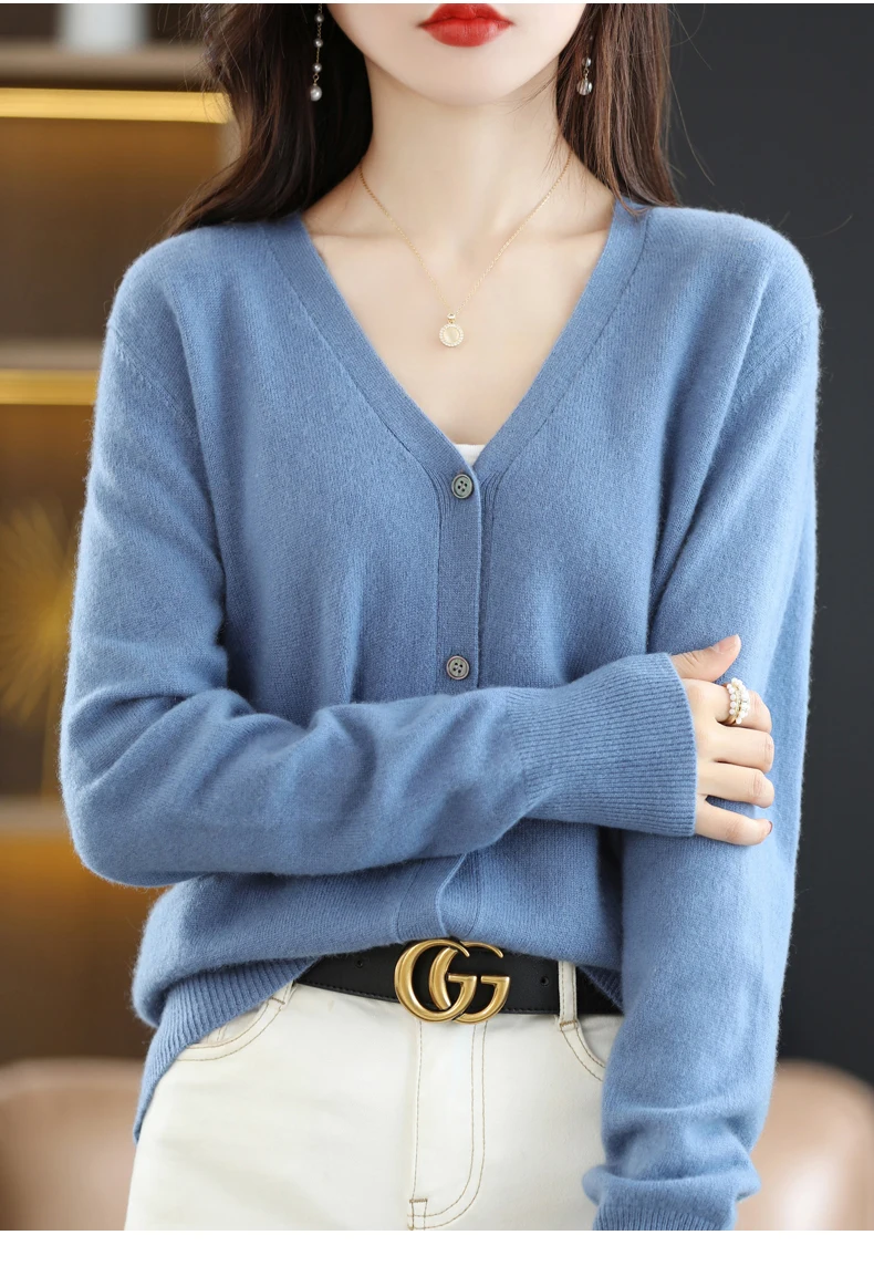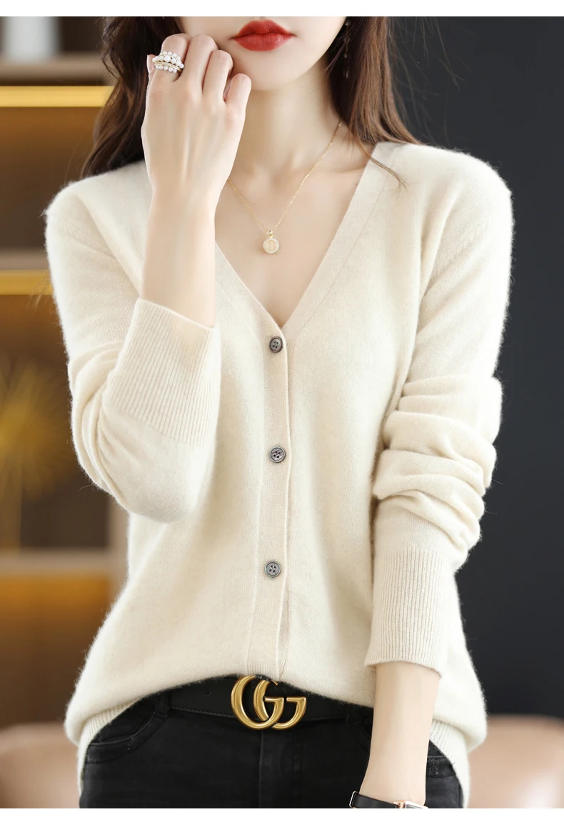 Spring Autumn Winter Women’s Chic Wool Knit Cardigan Loose V-Neck Long Sleeves Solid Color Soft Fashion Casual Sweater Jacket