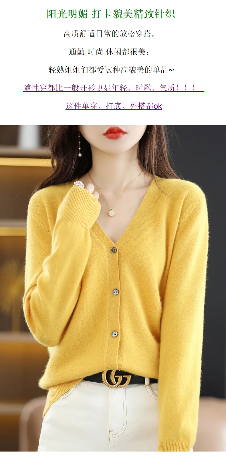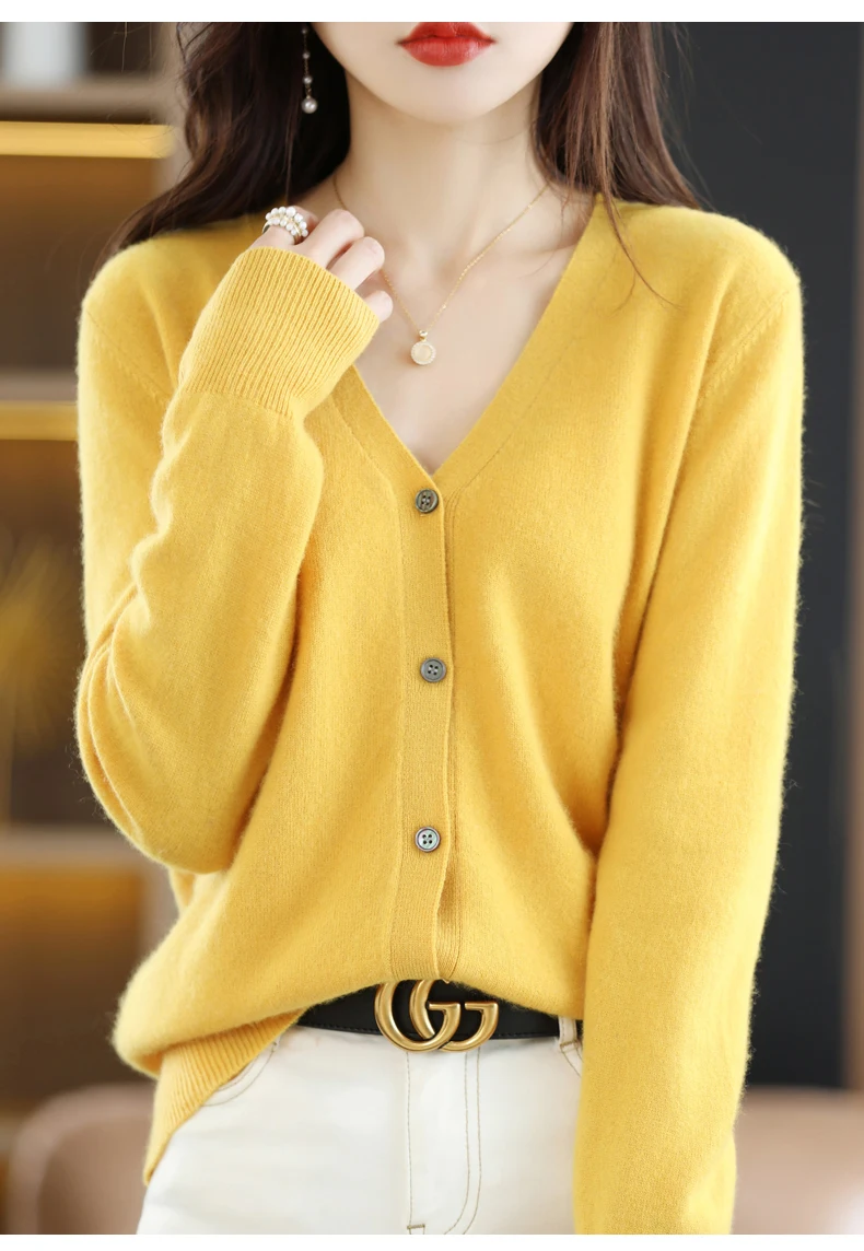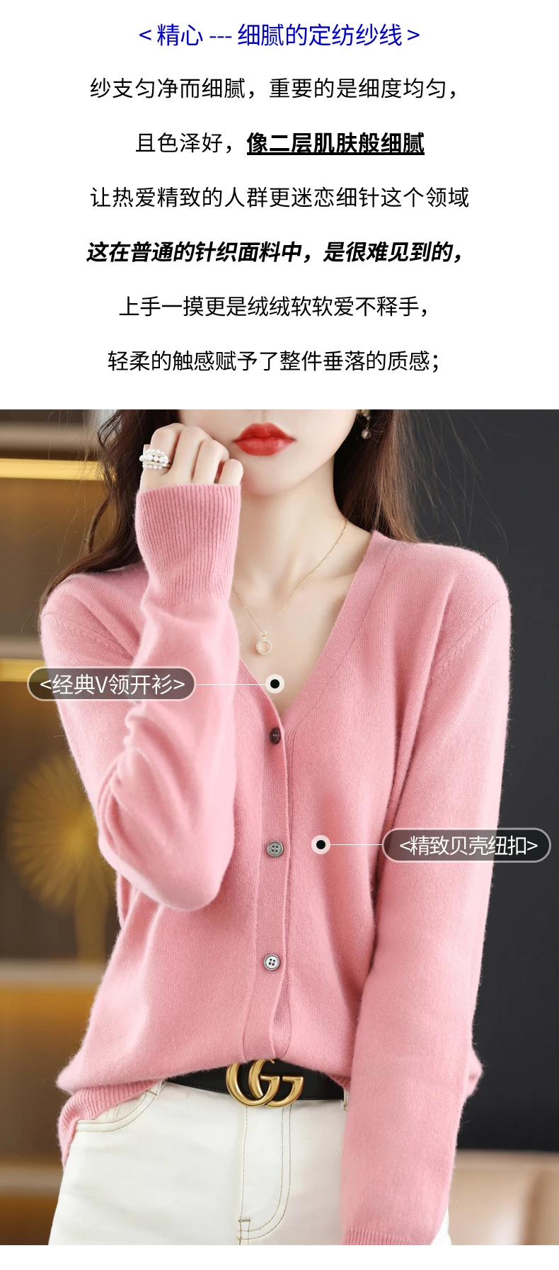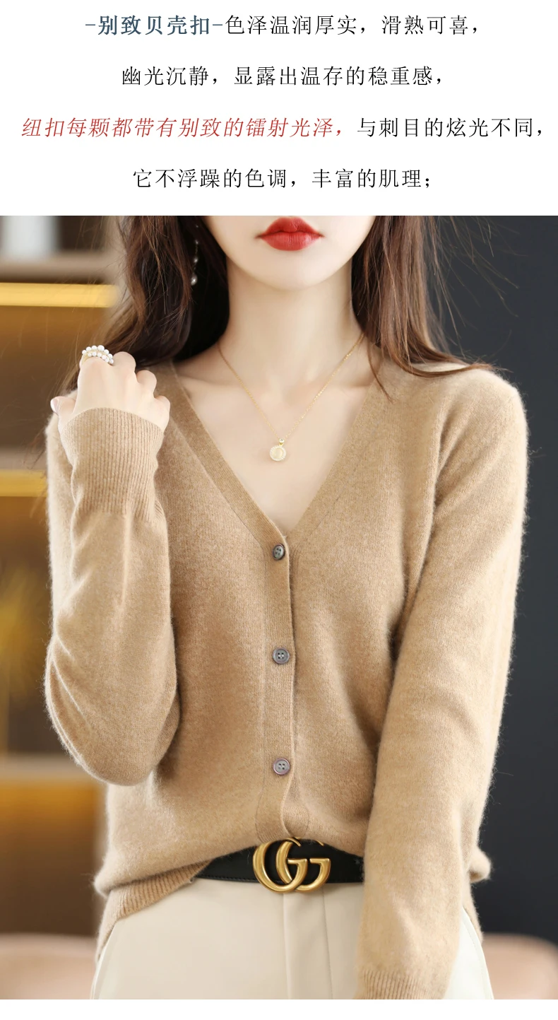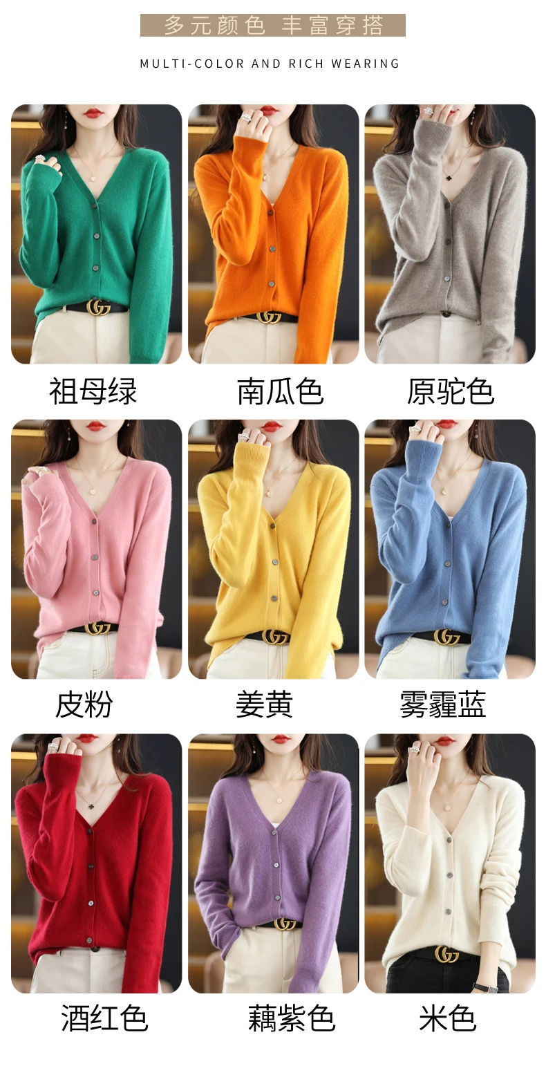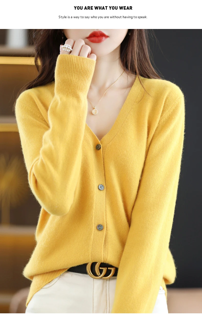 Spring Autumn Winter Women’s Chic Wool Knit Cardigan Loose V-Neck Long Sleeves Solid Color Soft Fashion Casual Sweater Jacket