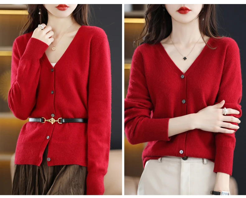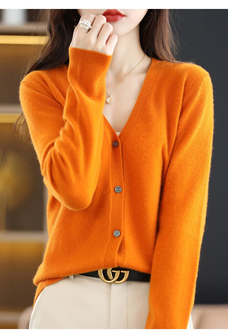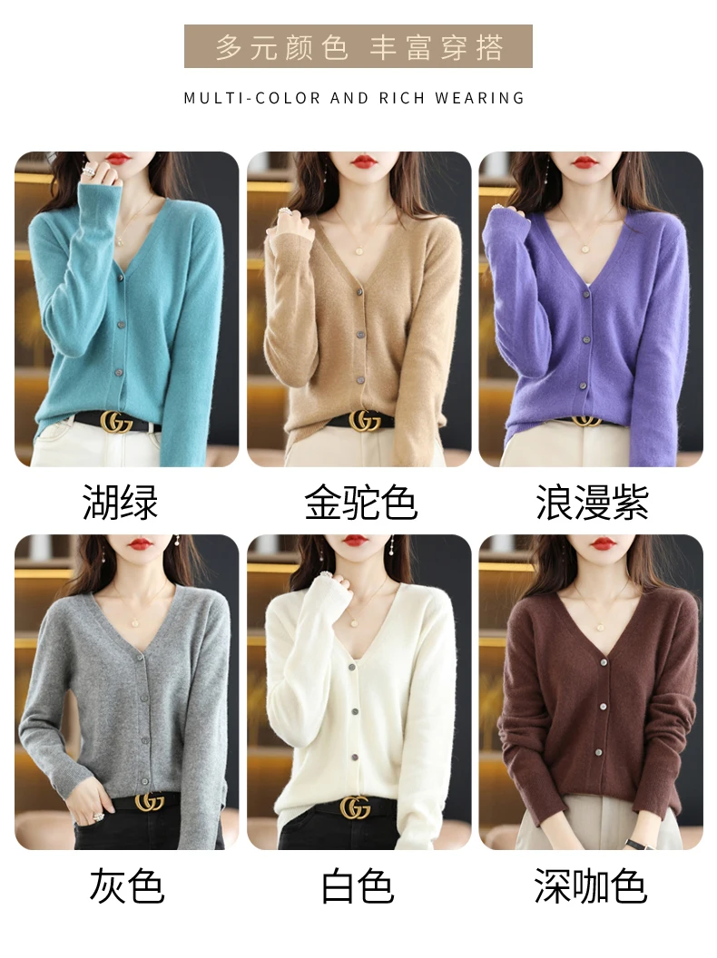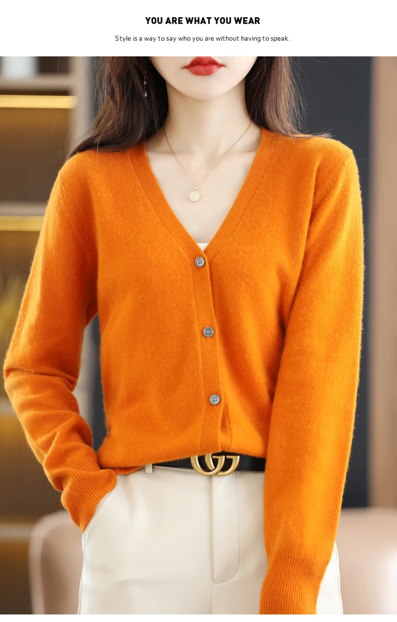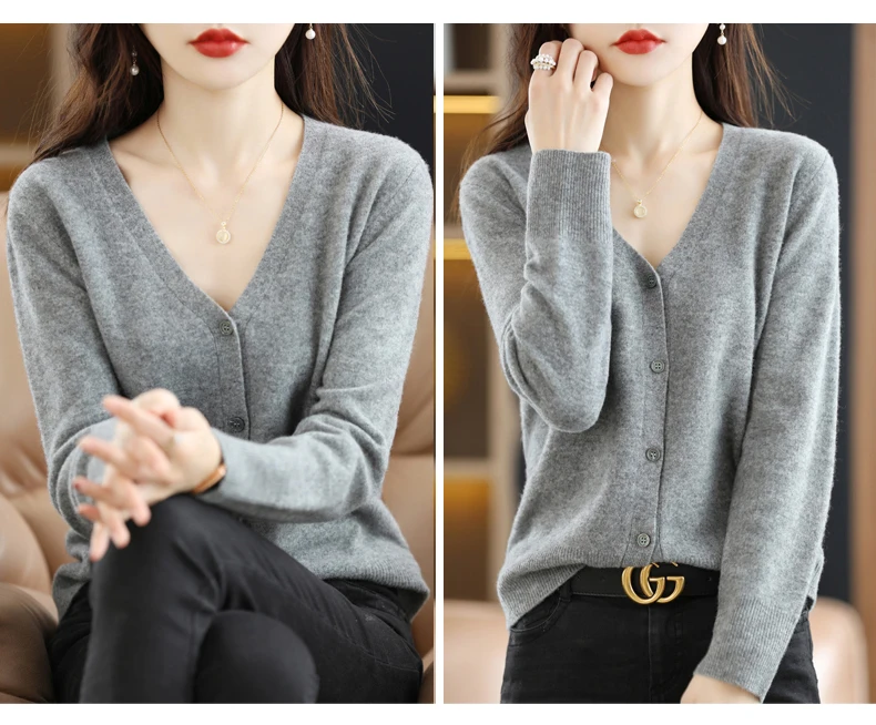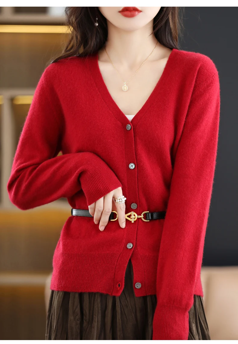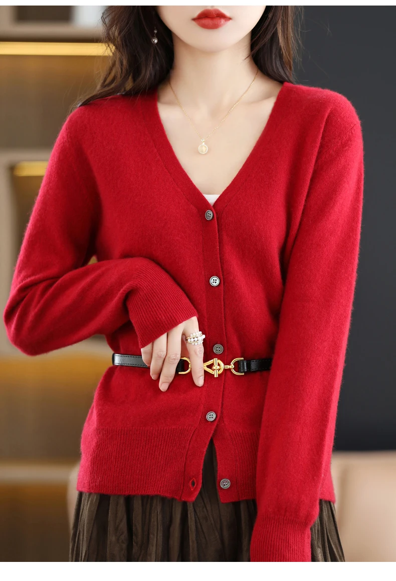 Spring Autumn Winter Women’s Chic Wool Knit Cardigan Loose V-Neck Long Sleeves Solid Color Soft Fashion Casual Sweater Jacket