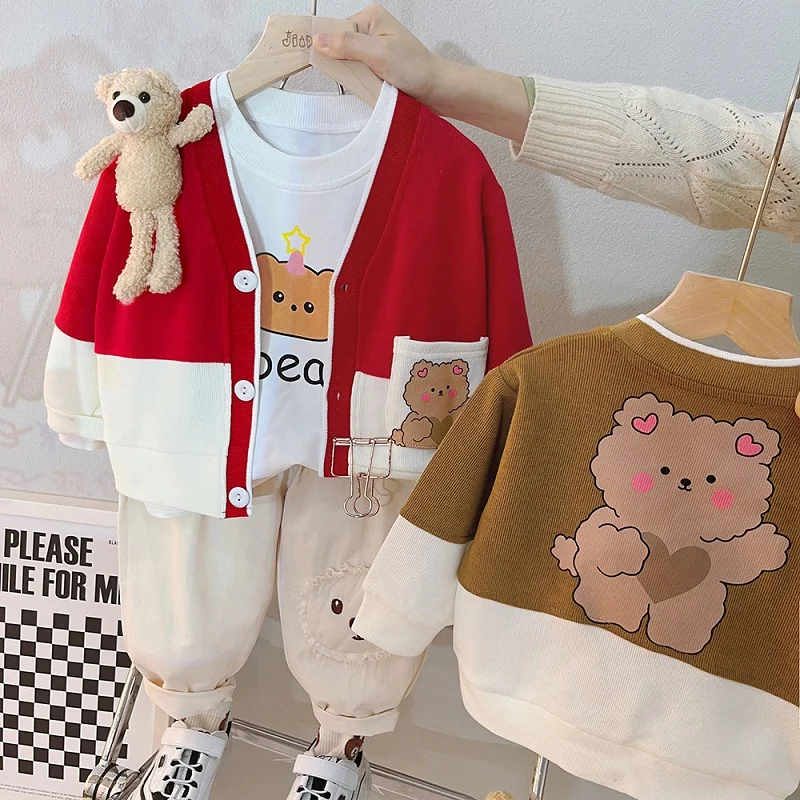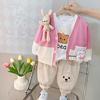 Spring baby cartoon pendant bunny long sleeve suit 0-4 years old children’s long sleeve cardigan three piece simple casual sport