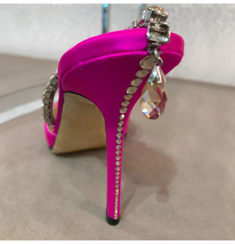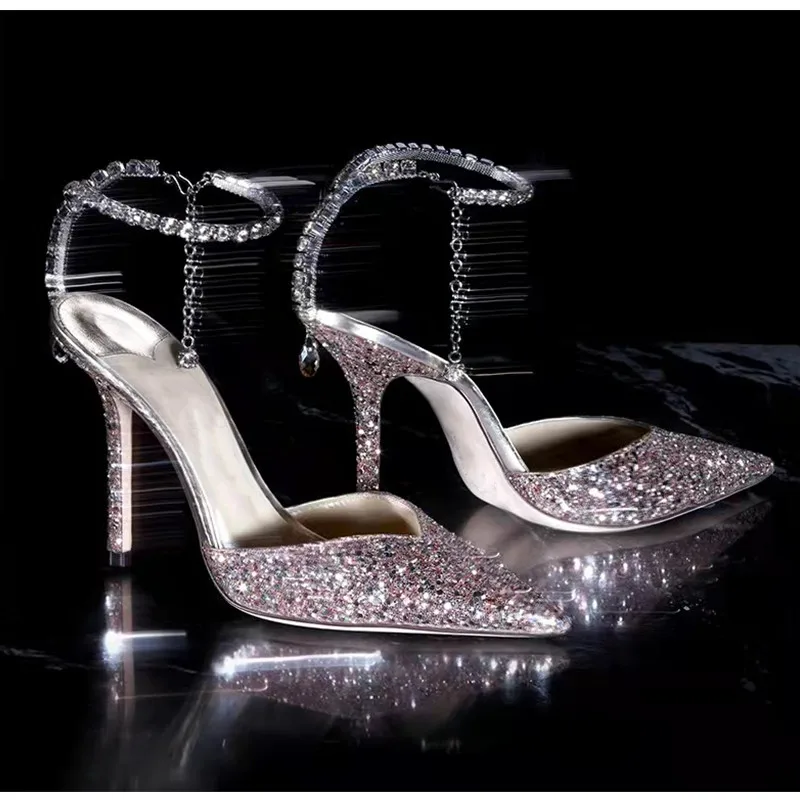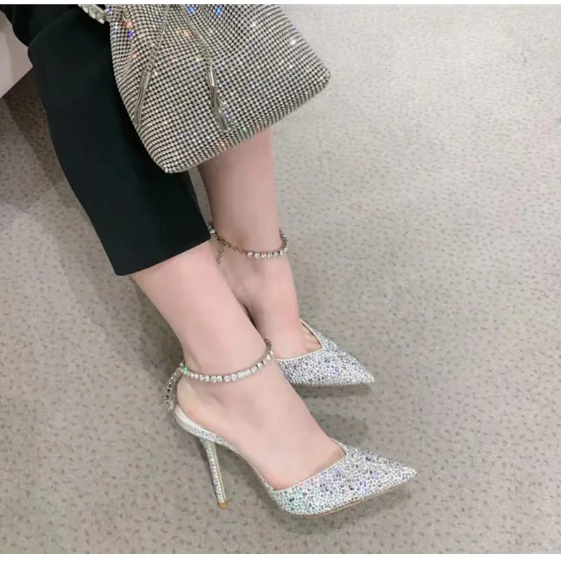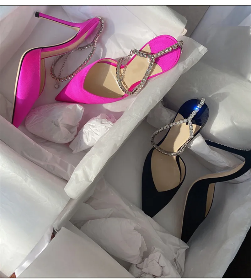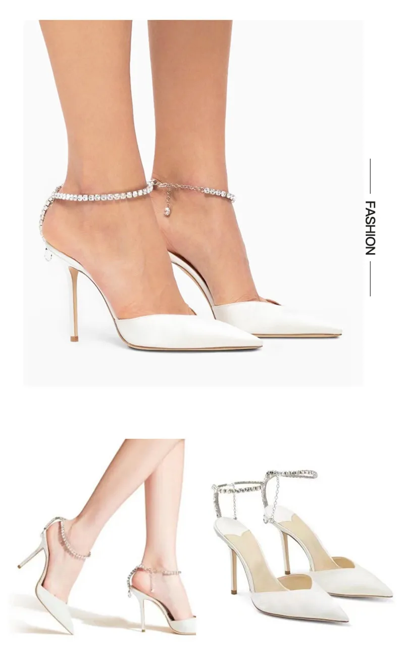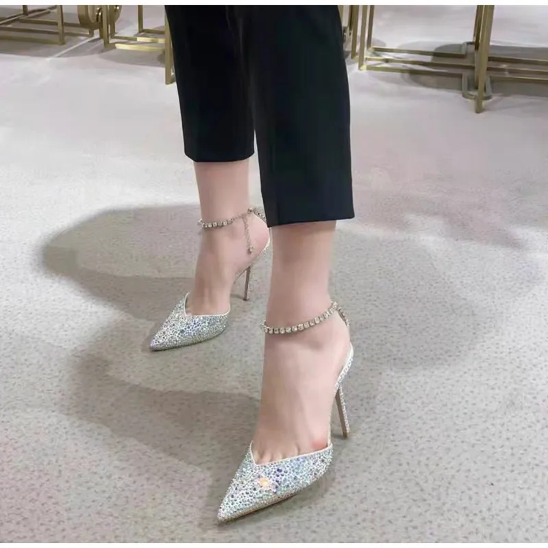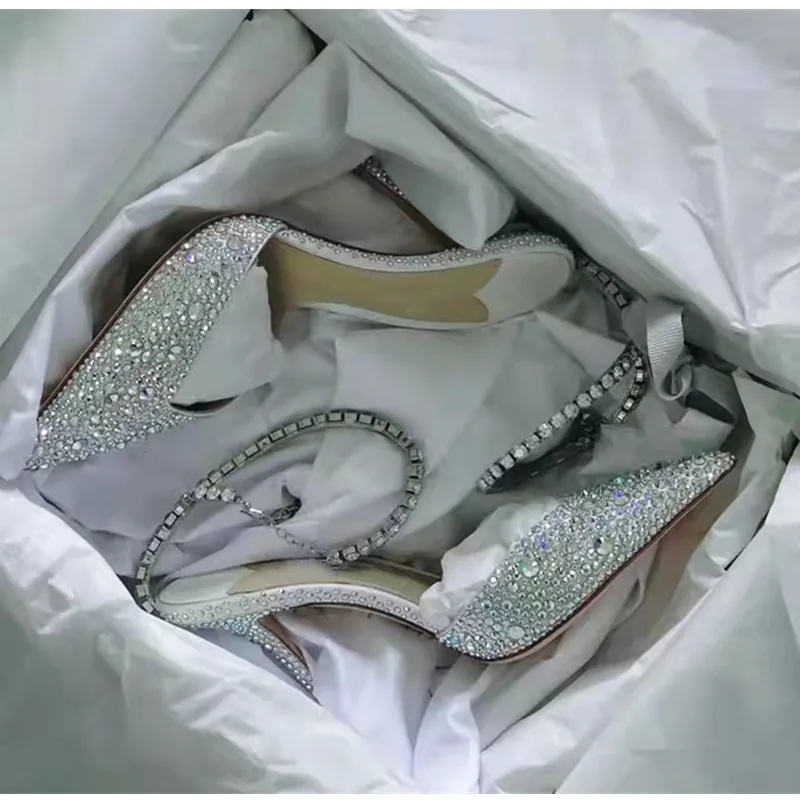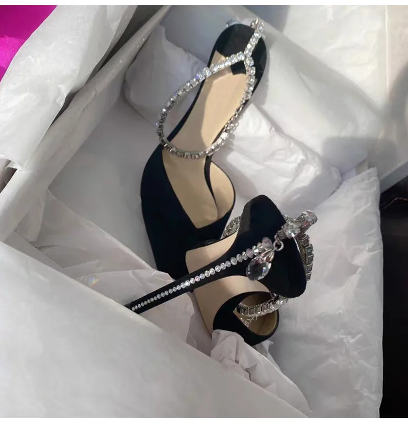 Star style Luxury Rhinestones Chains Women Pumps Elegant High heels Summer Ankle Strap Party shoes Fashion Wedding Prom Shoes