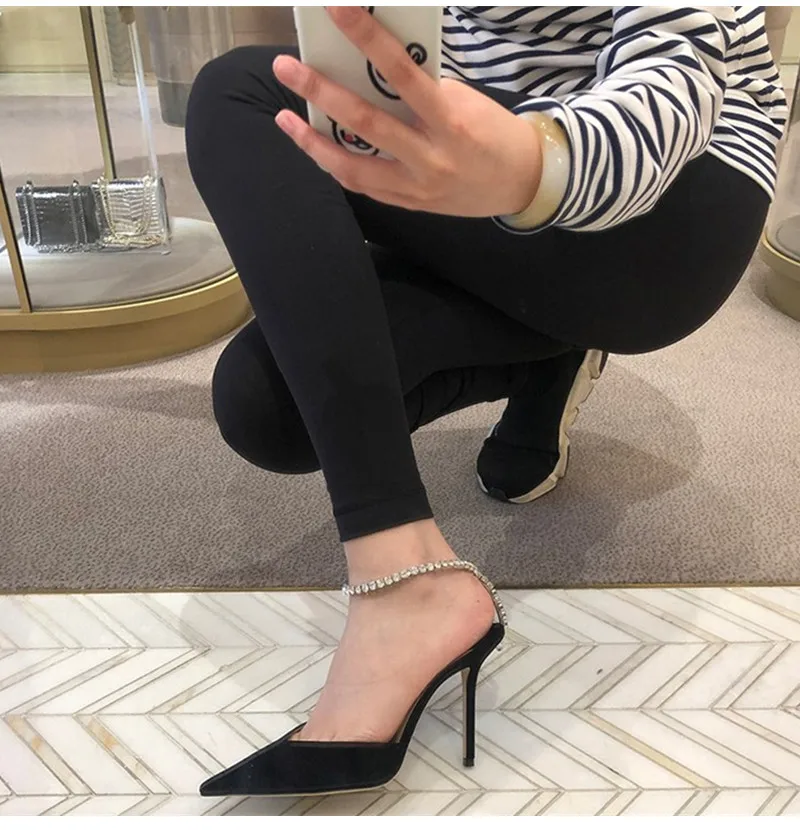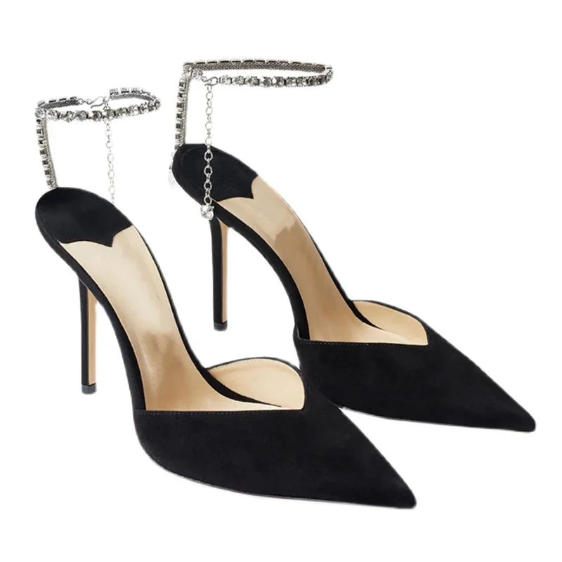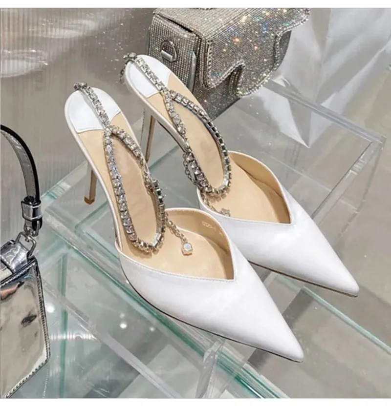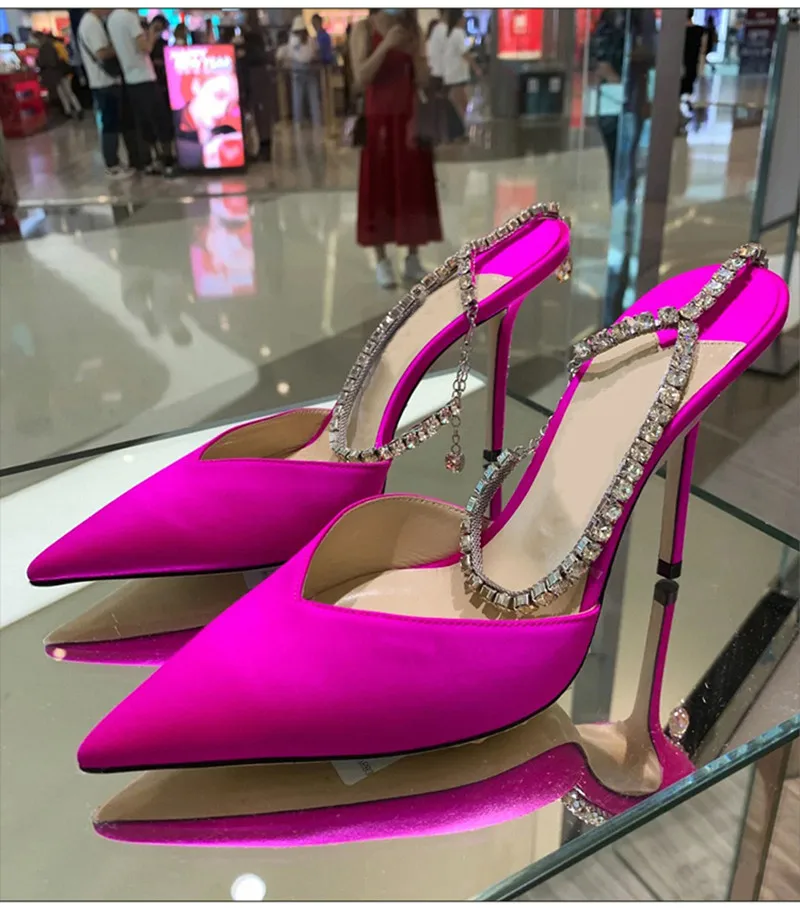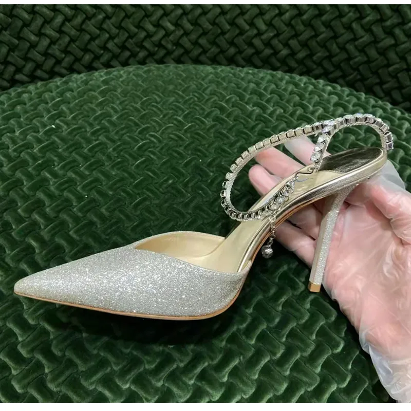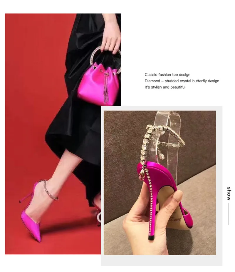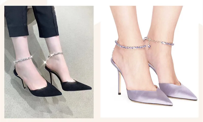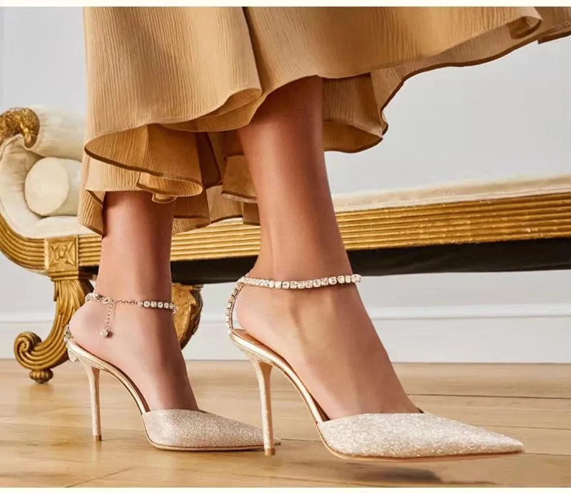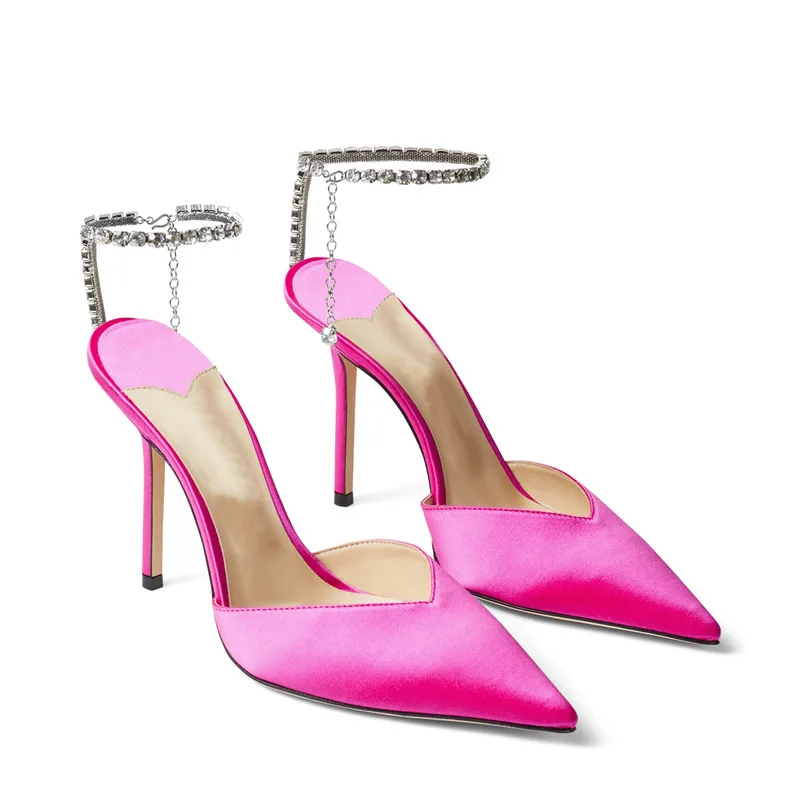 Star style Luxury Rhinestones Chains Women Pumps Elegant High heels Summer Ankle Strap Party shoes Fashion Wedding Prom Shoes