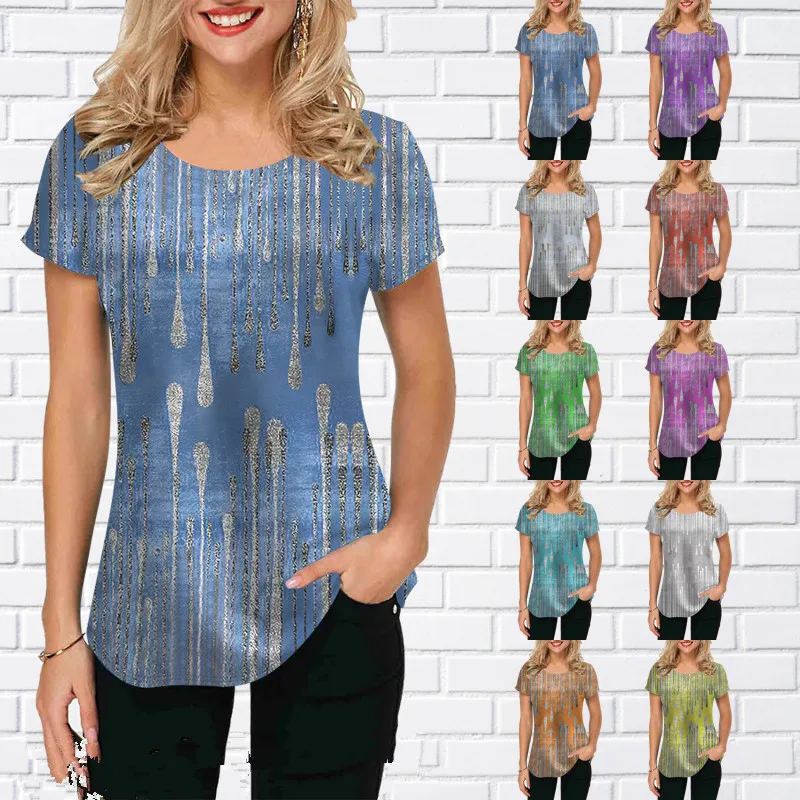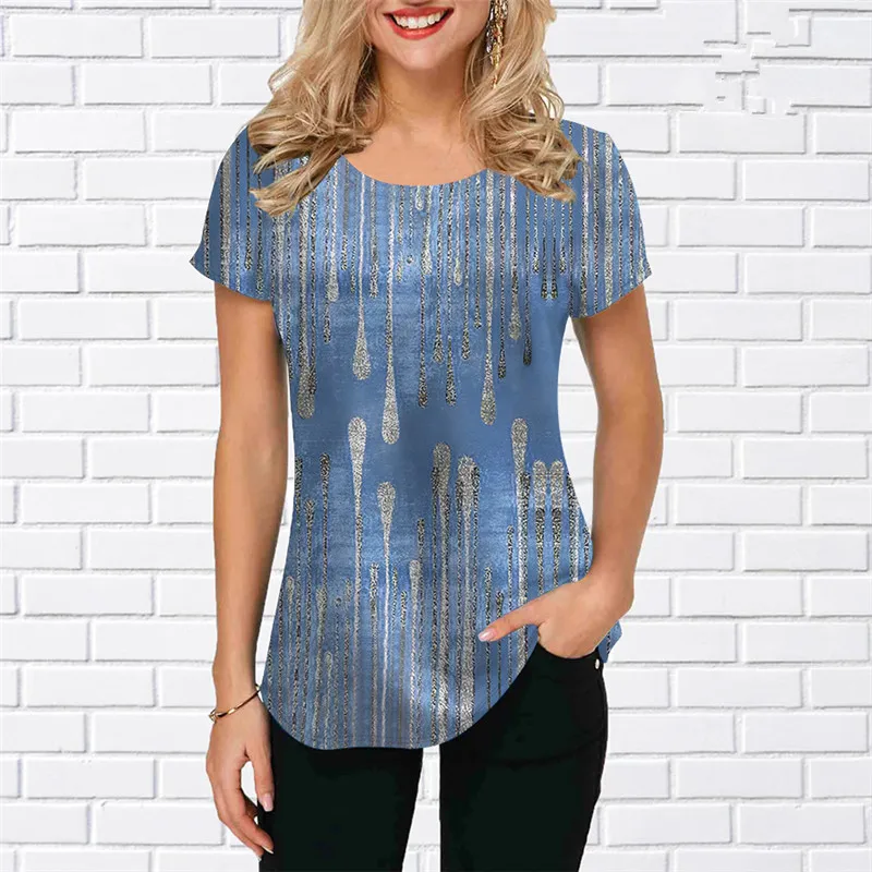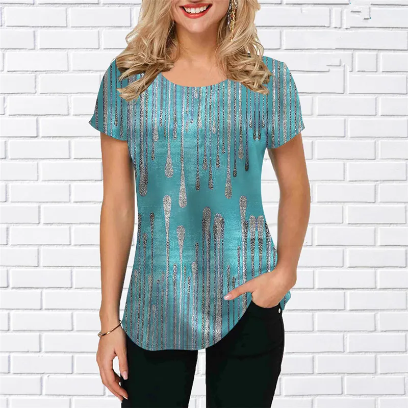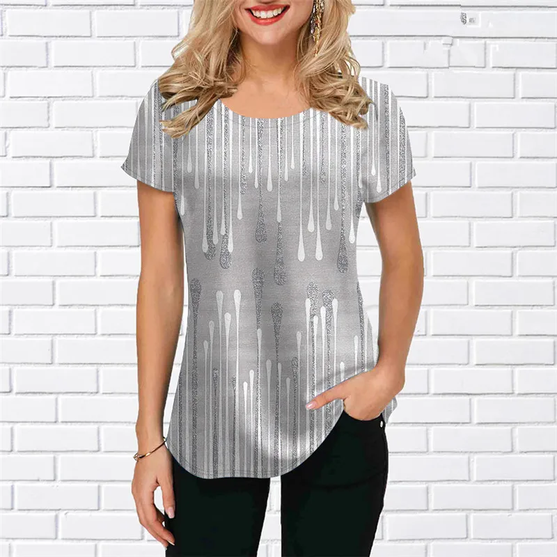 Striped Women T-shirts Summer Short Sleeve 3D Water-drop Graphic Print Street Ladies T Shirt Loose Casual O-Neck Oversized Tops