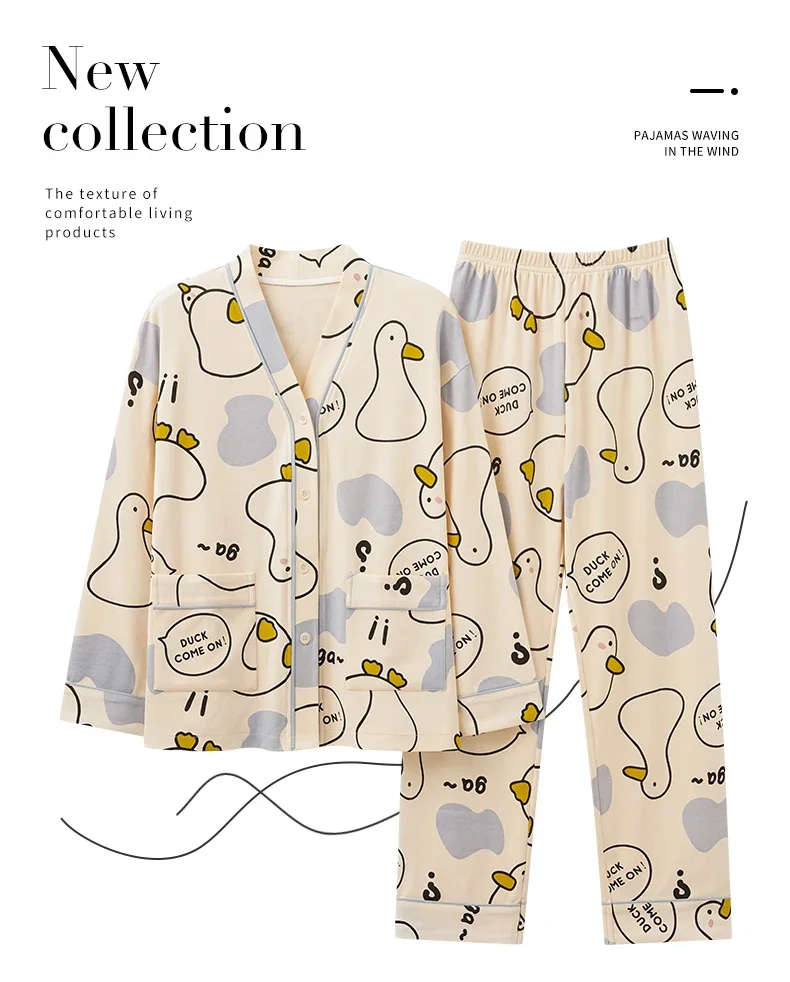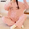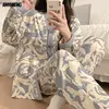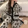 SUKAE Women Autumn Winter New Pajamas Sets Faux Cotton Sleepwear Casual Kimono Pijamas Sets Leisure Lapel Loungewear Homesuits