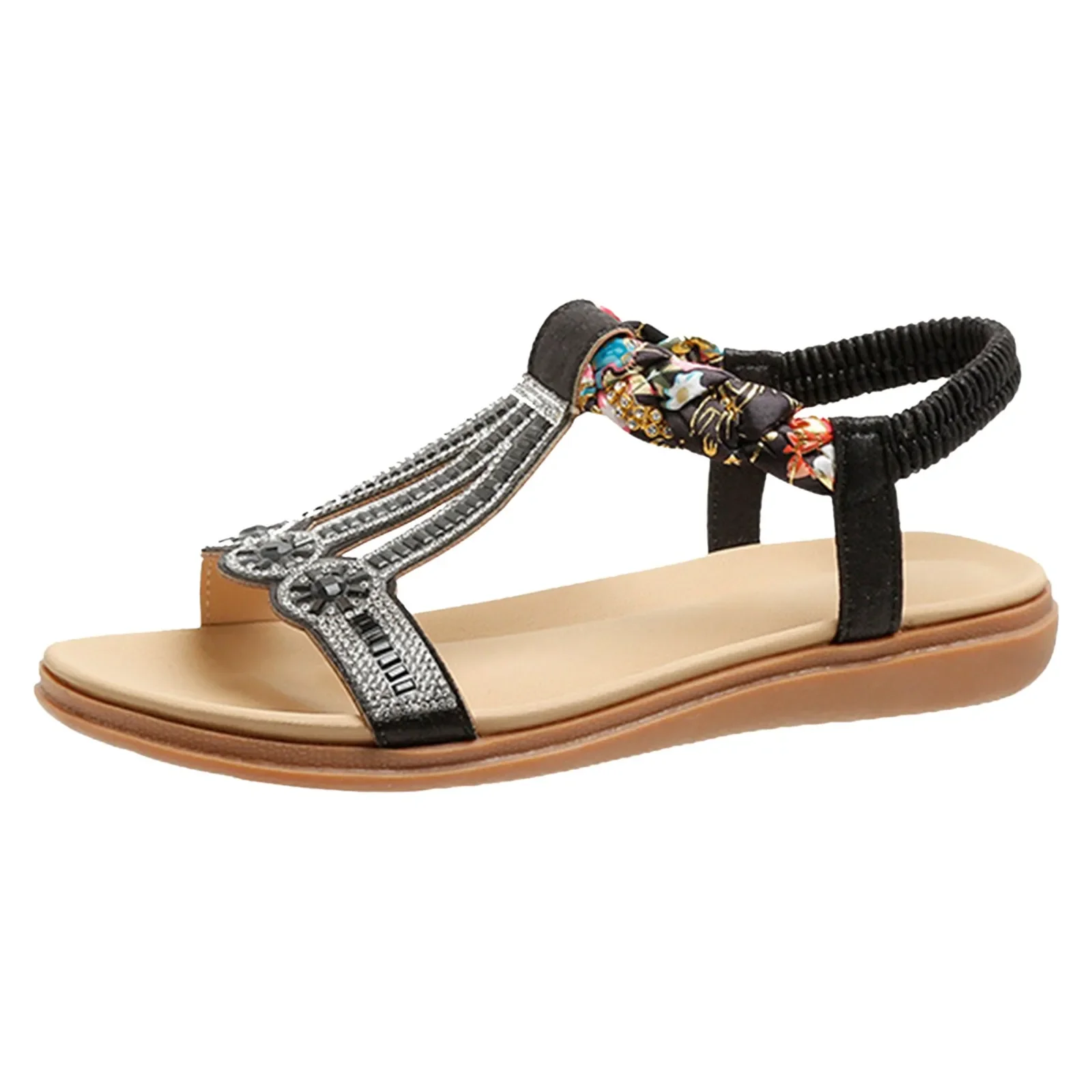 Summer Bohemian Rhinestone Elastic Band Beach Sandals For Women