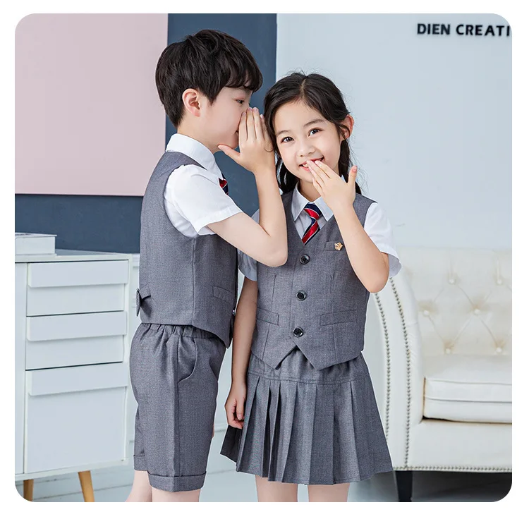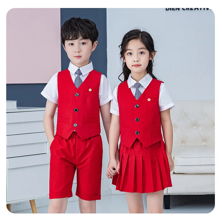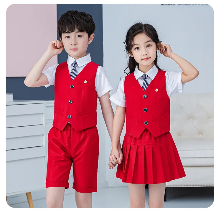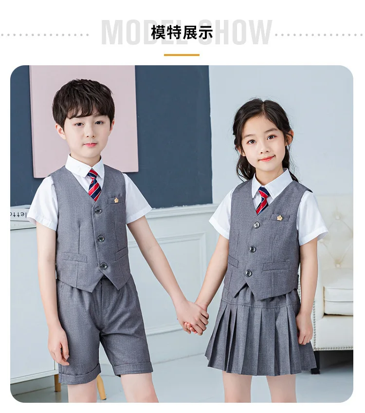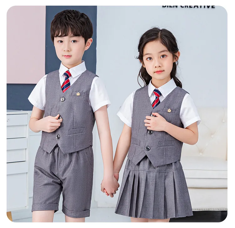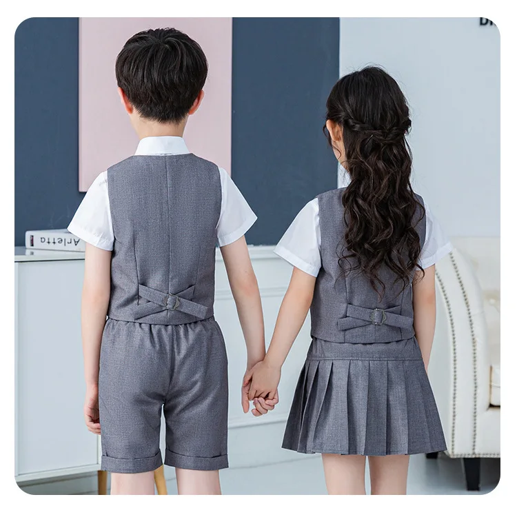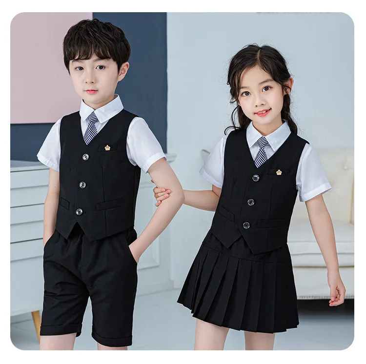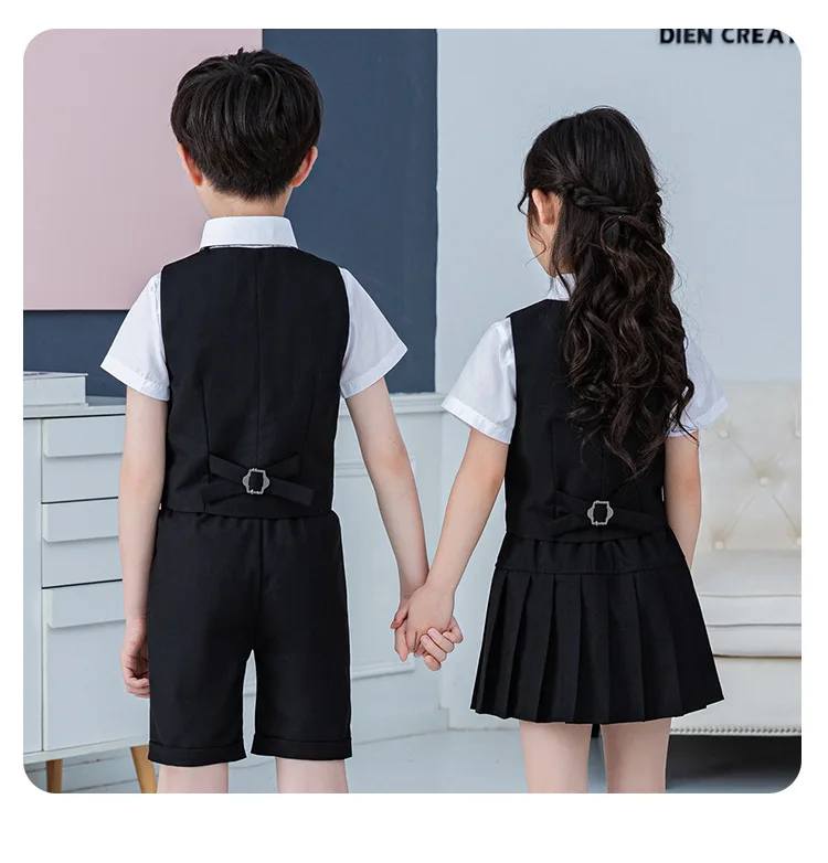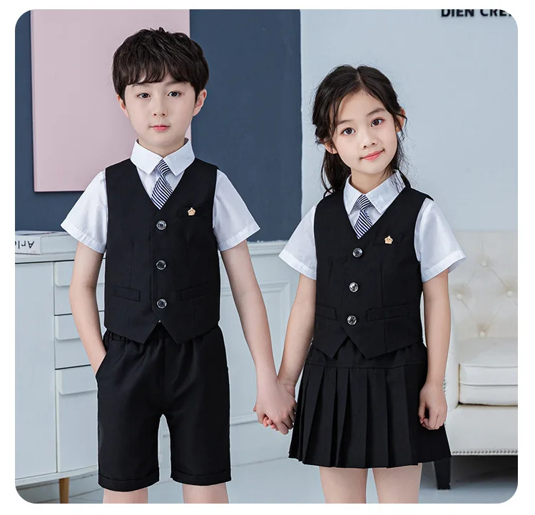 Summer Boys And Girls Stage Chorus Performance Clothing Set Children Vest Shorts/skirt Tie Outfit Kids School Uniform Suit Set