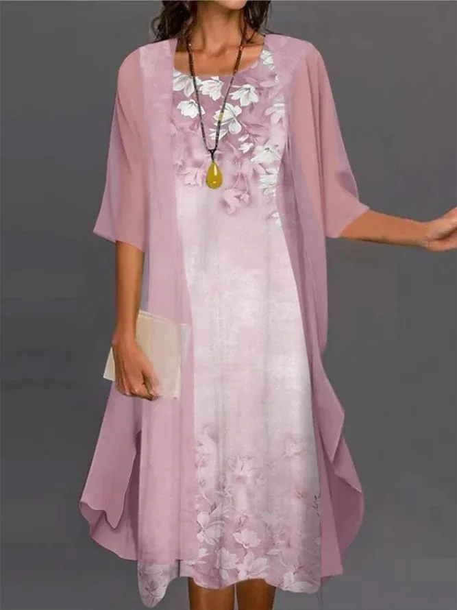 Summer Elegant Dress Two-piece Set Women Fashion Floral Print Dress For Women Casual Long Cardigan Coat Sun Protection Shirt