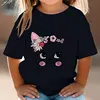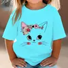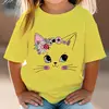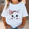 Summer Kids T Shirt Flower Cat Graphic Shirt Girls Floral Kitty Tops White Short Sleeve Wild Tee Cute Animal Cartoon Cat T-shirt