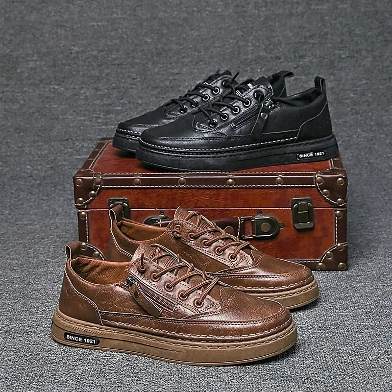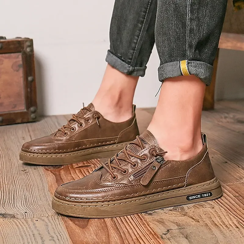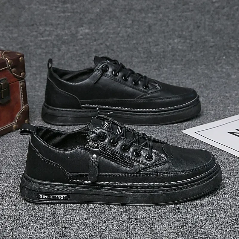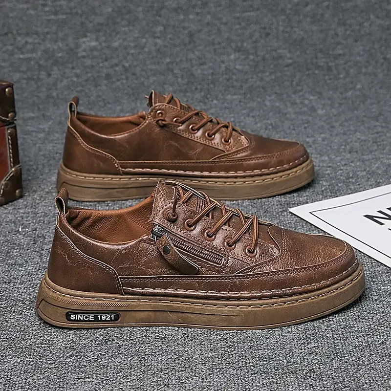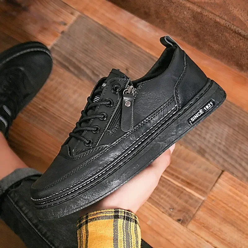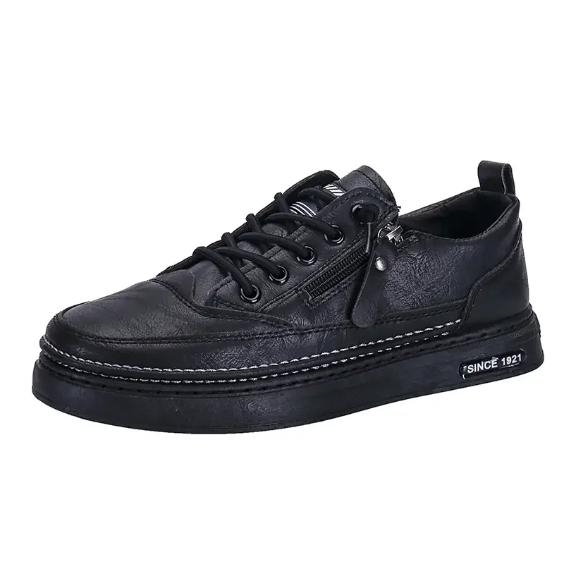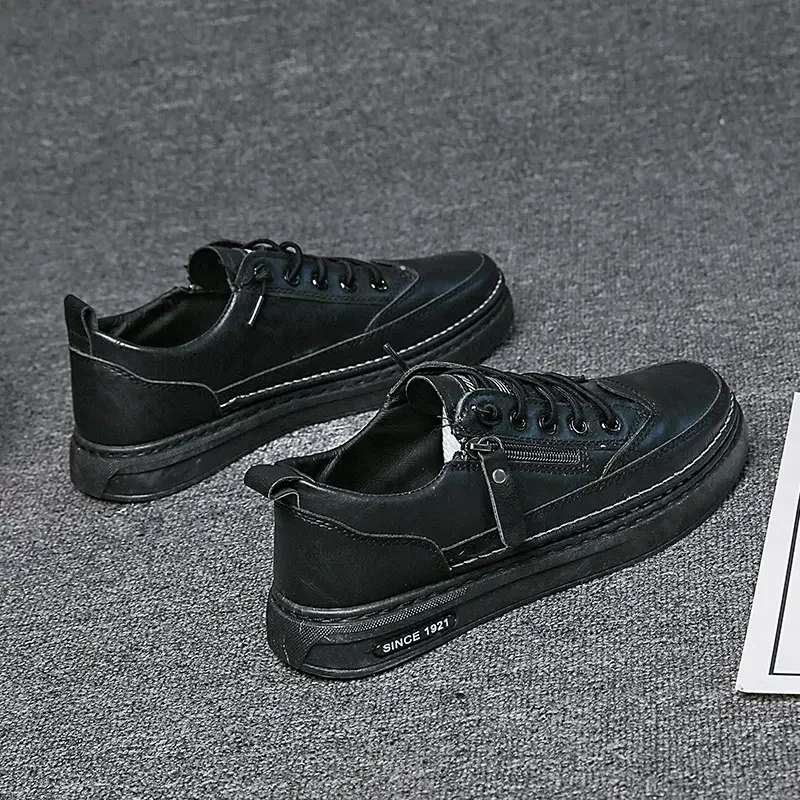 Summer Low Cut Men’s Casual Shoes Trendy Microfiber Lace Up Men’s Flat Board Shoes Outdoor Men’s Sport Shoes With Side Zipper