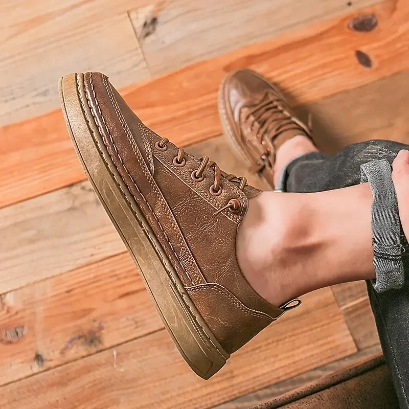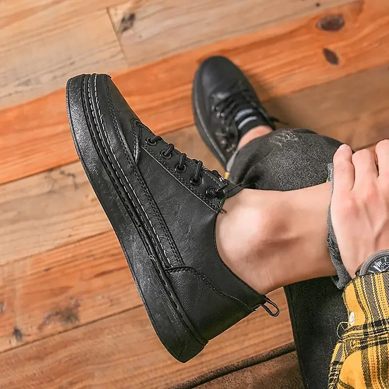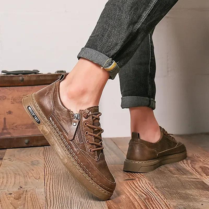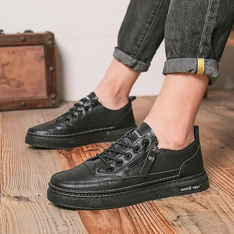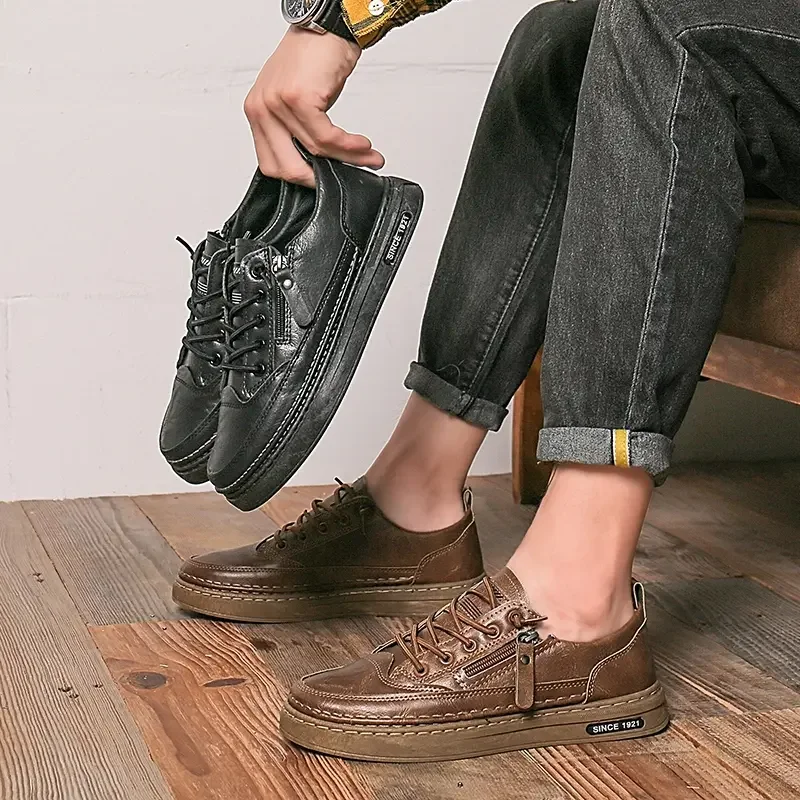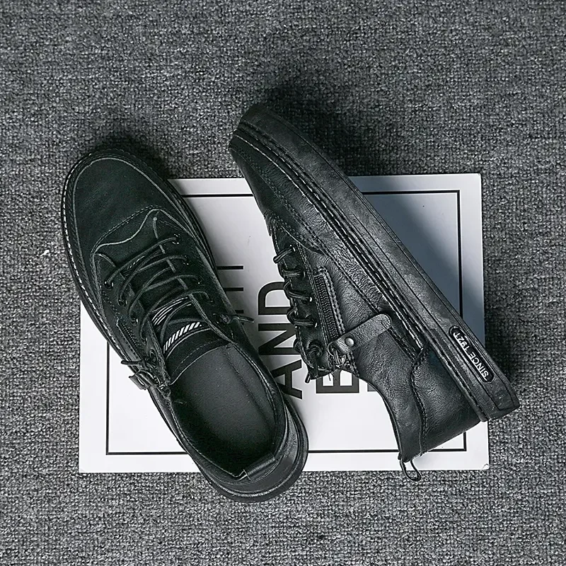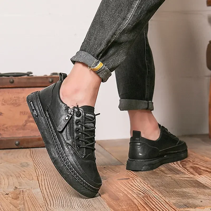 Summer Low Cut Men’s Casual Shoes Trendy Microfiber Lace Up Men’s Flat Board Shoes Outdoor Men’s Sport Shoes With Side Zipper
