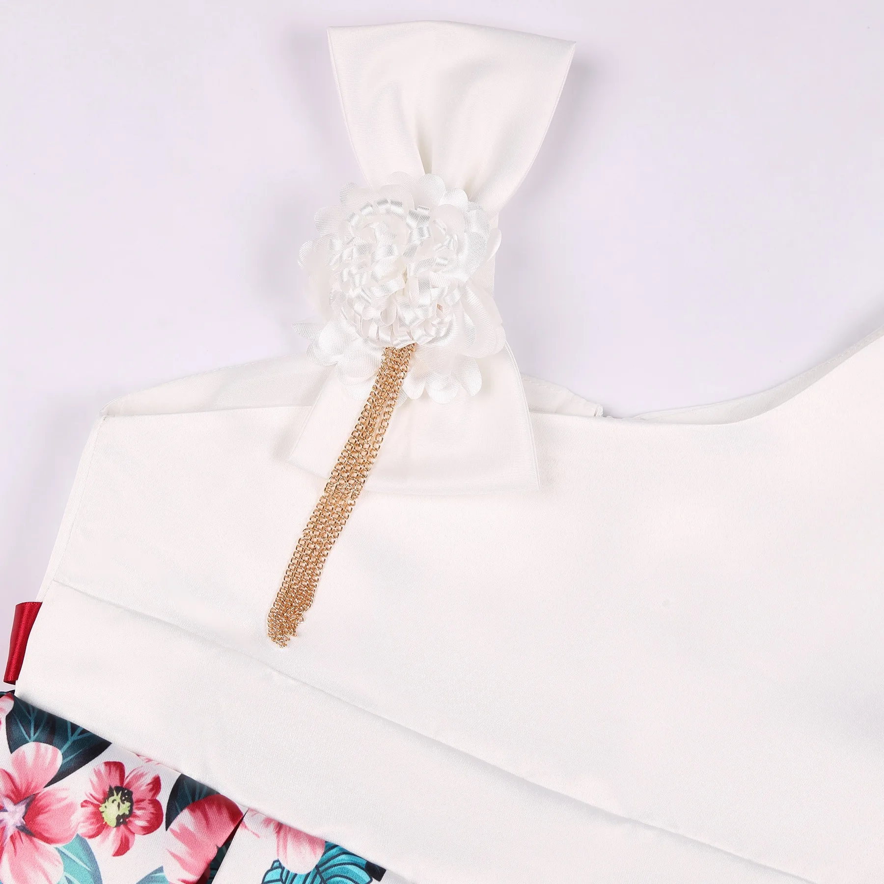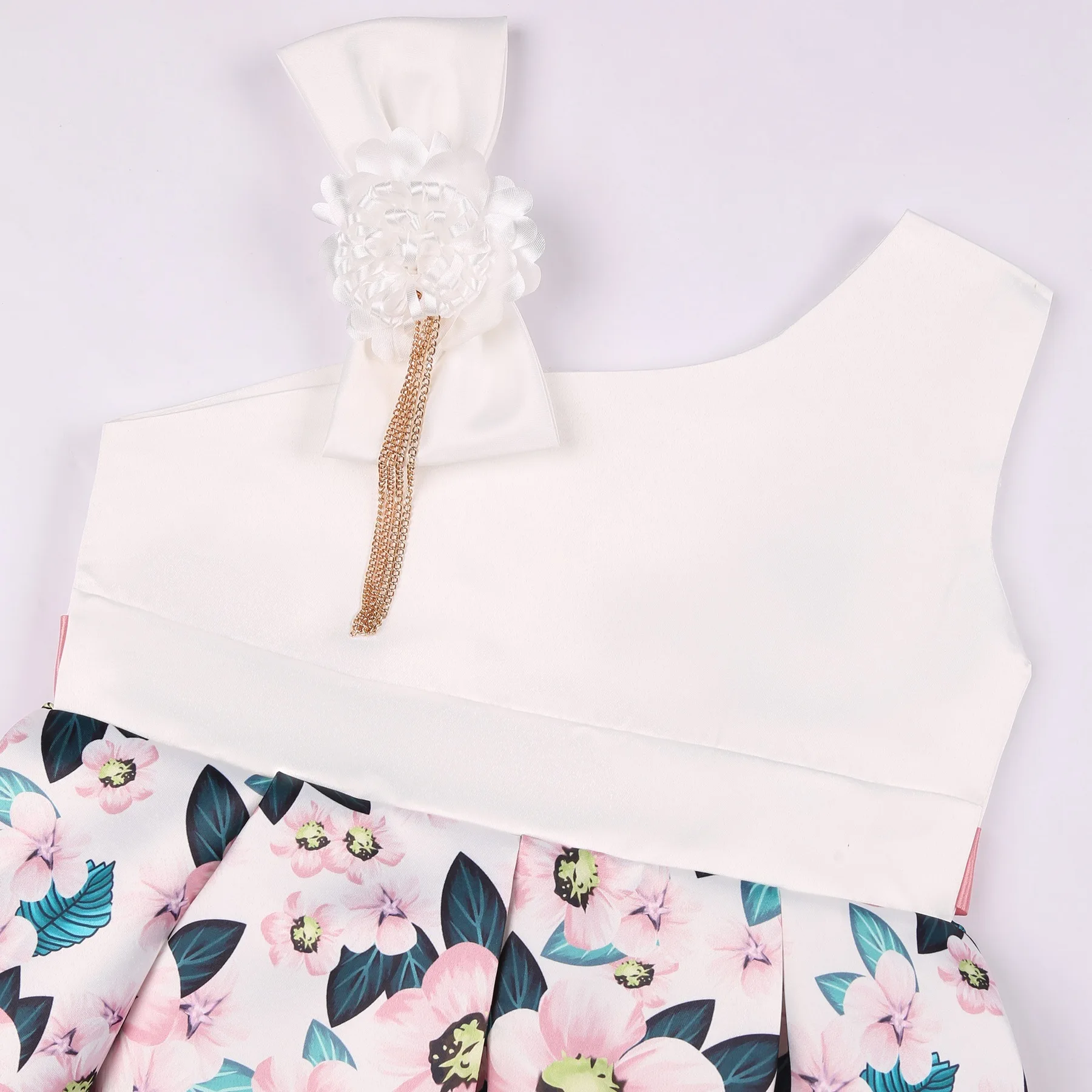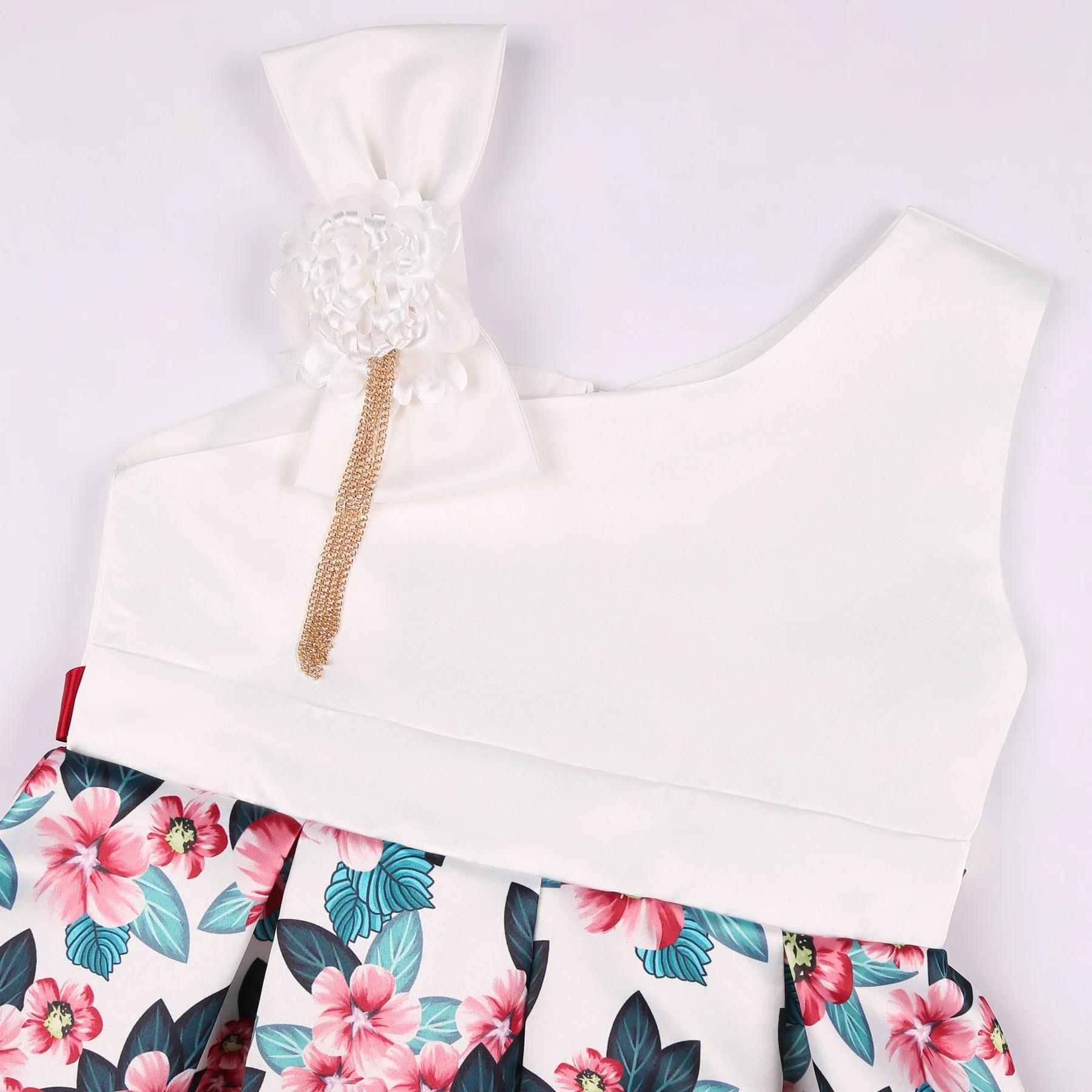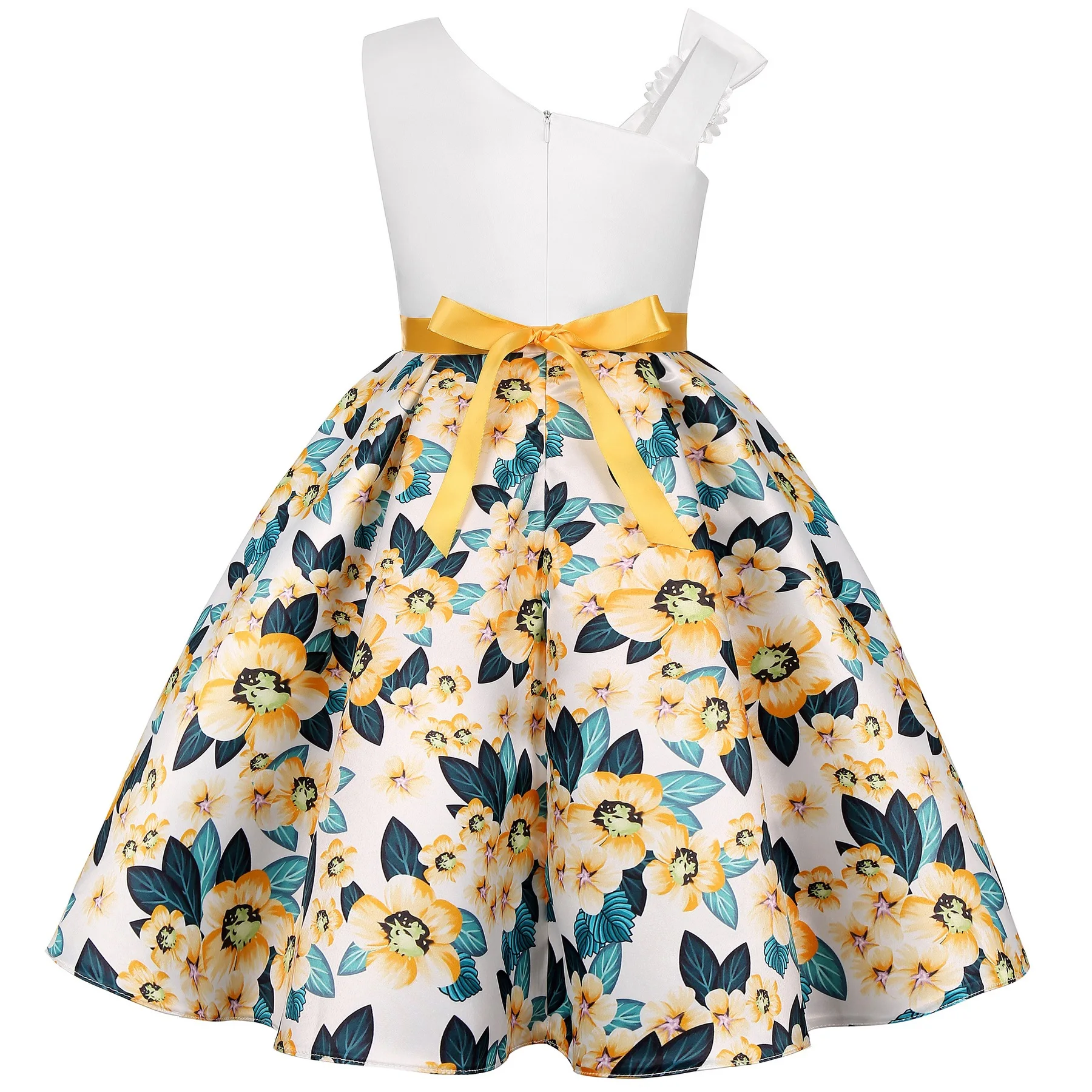 Summer New Girl’s Skew Shoulder 3D Flower Print Dress Birthday Party Wedding Flower Girl Carnival Party Dress for 2-10 Years