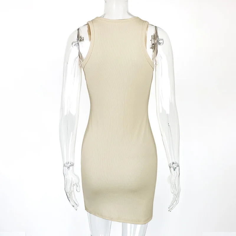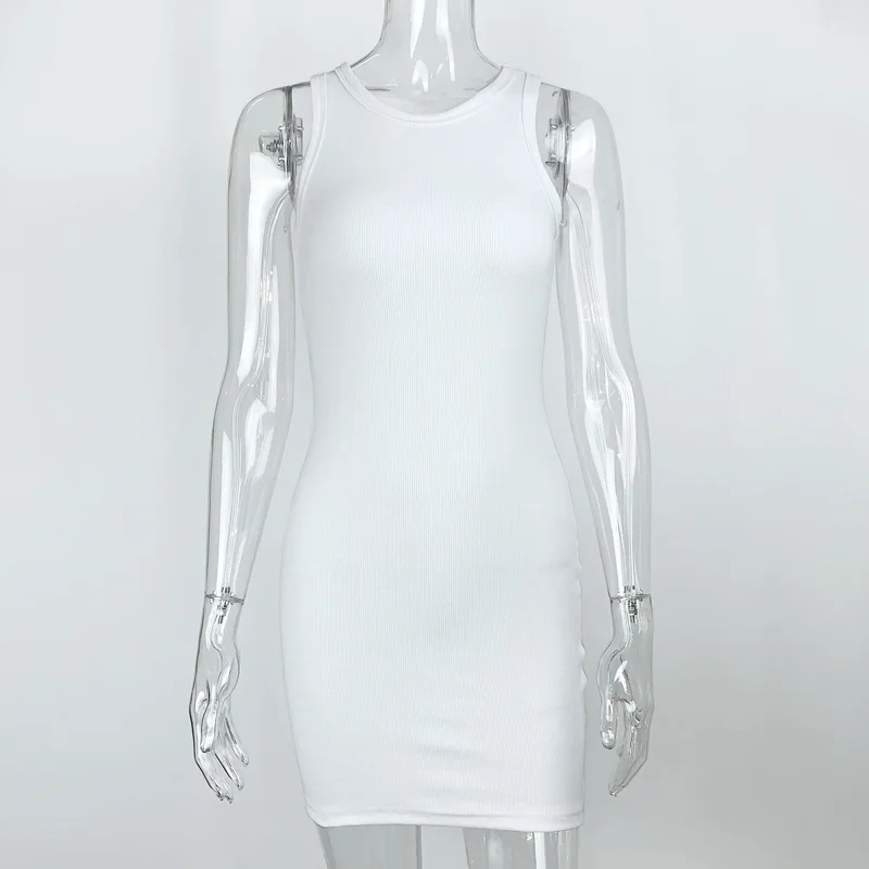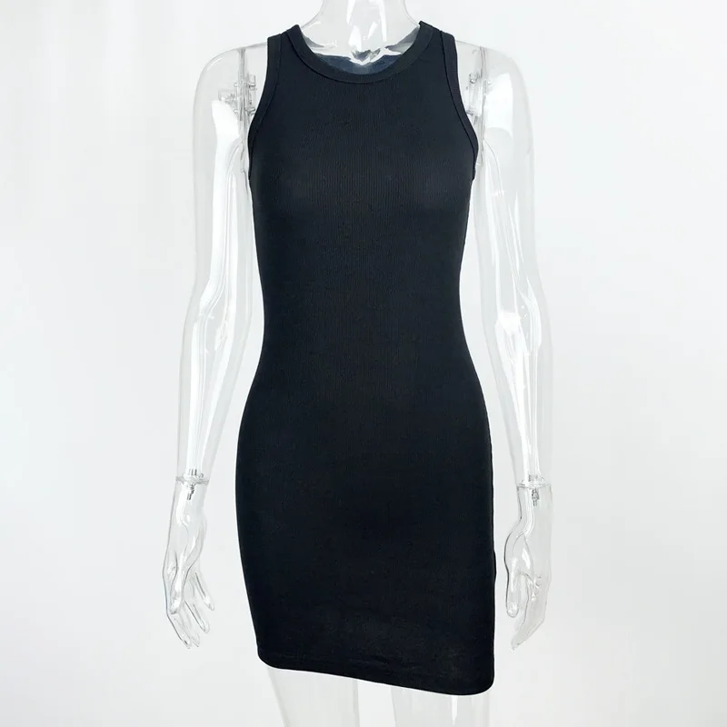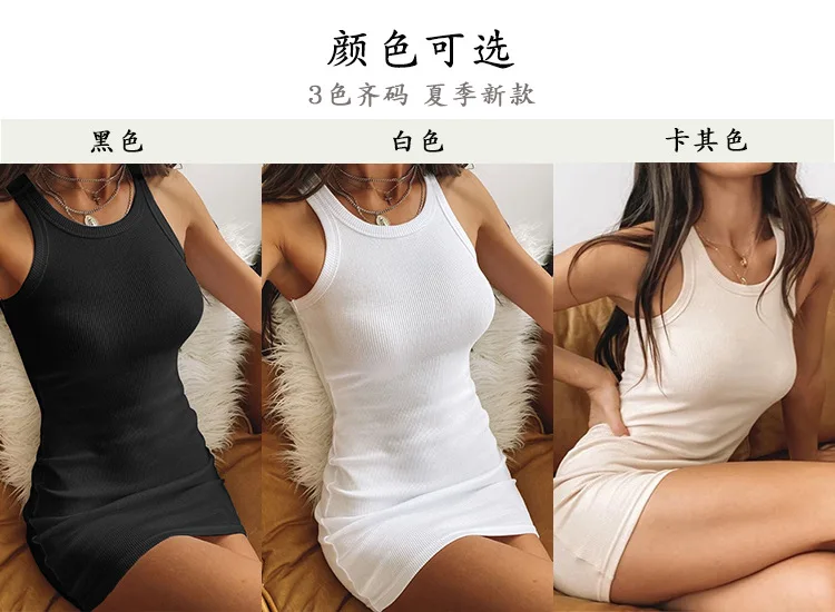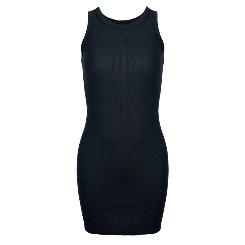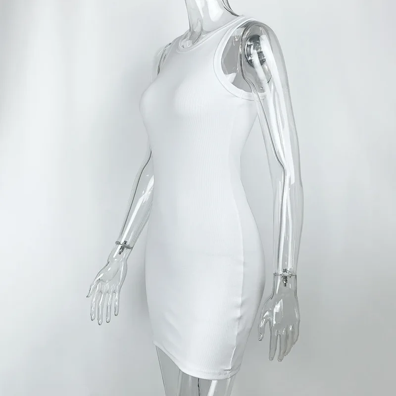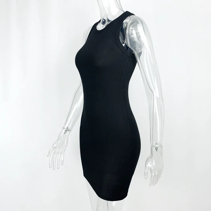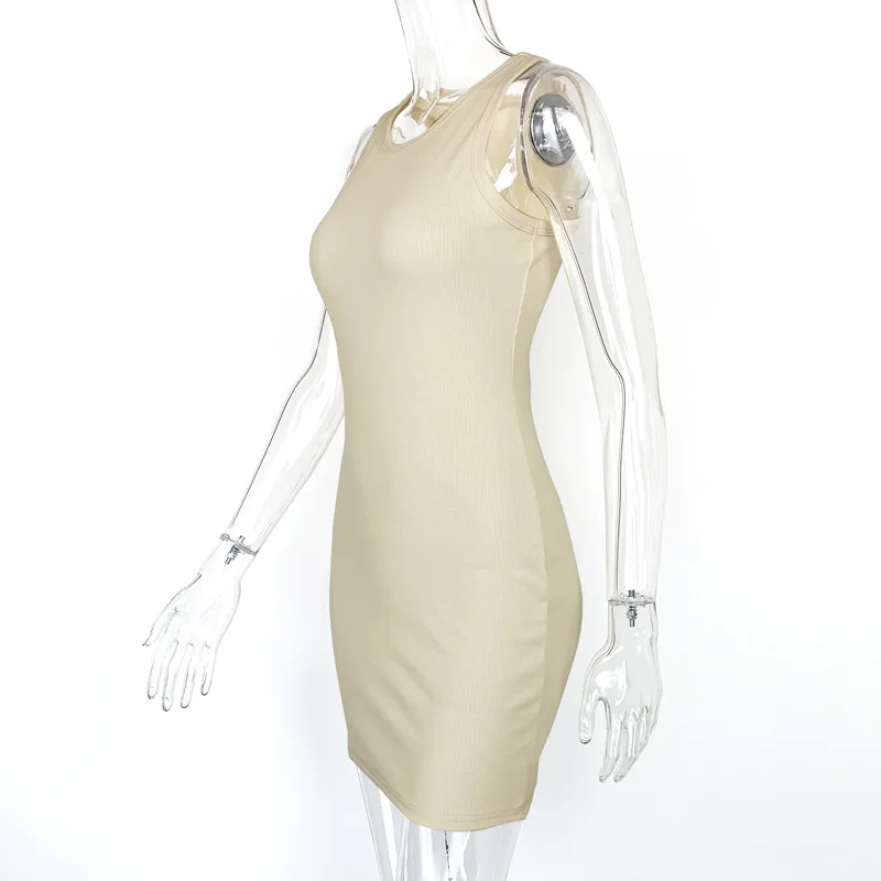Summer Party Sexy Lady Solid Color O-Neck Sleeveless Slims Fit Bodycon Pencil Dress Sexy Woman Sleeveless Dresses