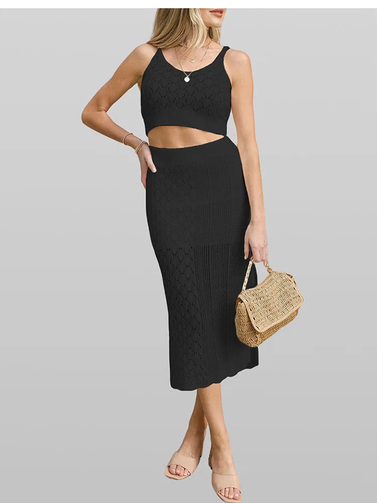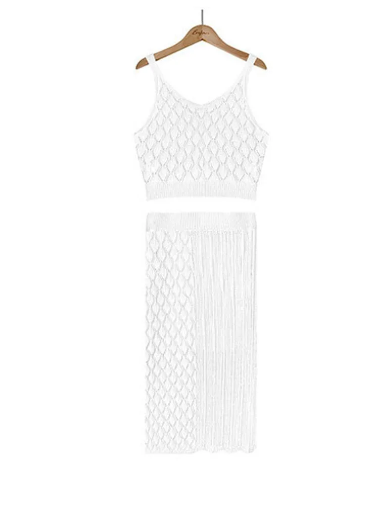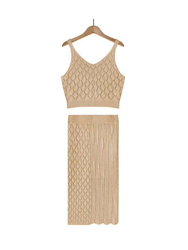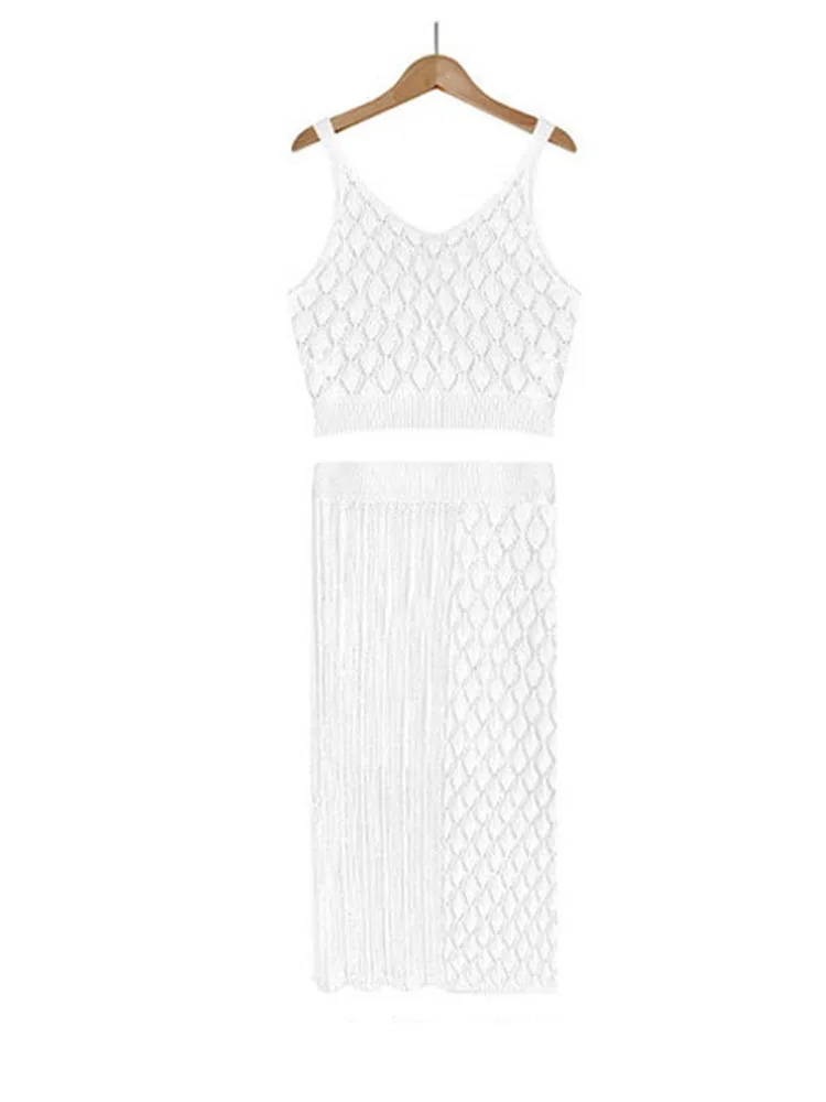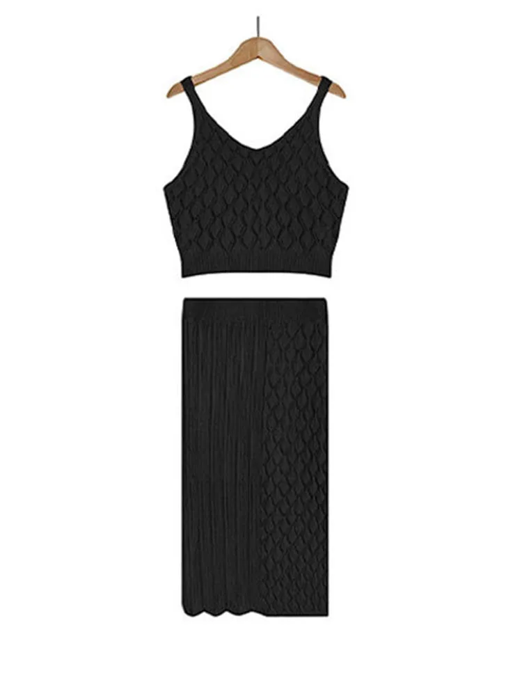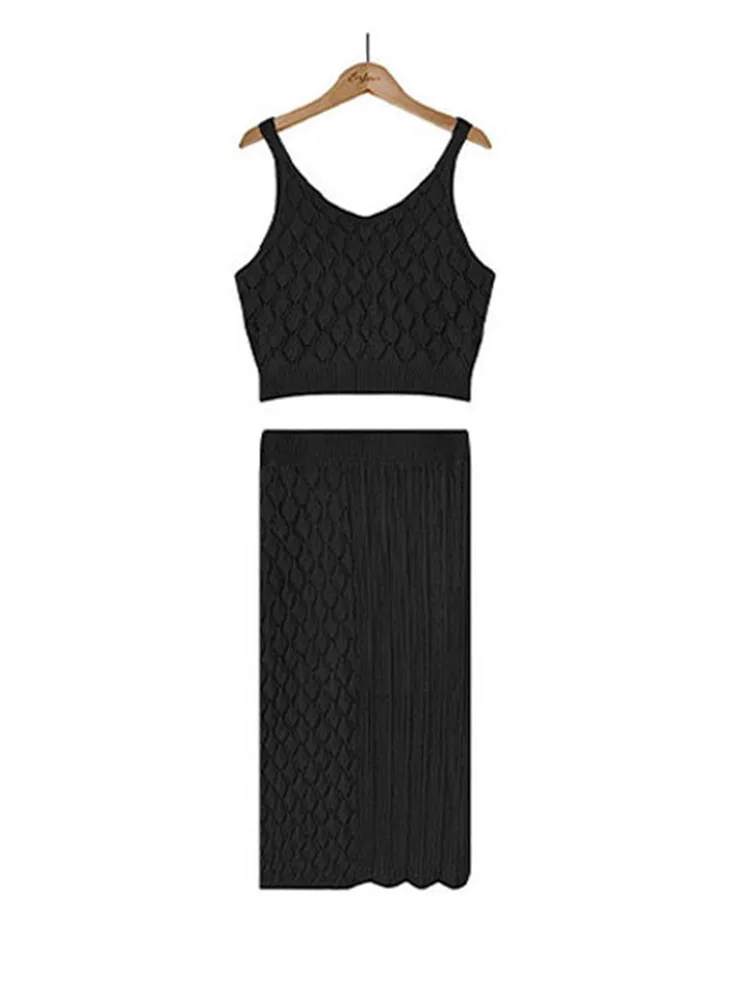Summer Two Piece Skirt Set Tank Top Short Sleeveless With Skinny Split High Waist Skirt Female Elegant Two Piece Suit Female