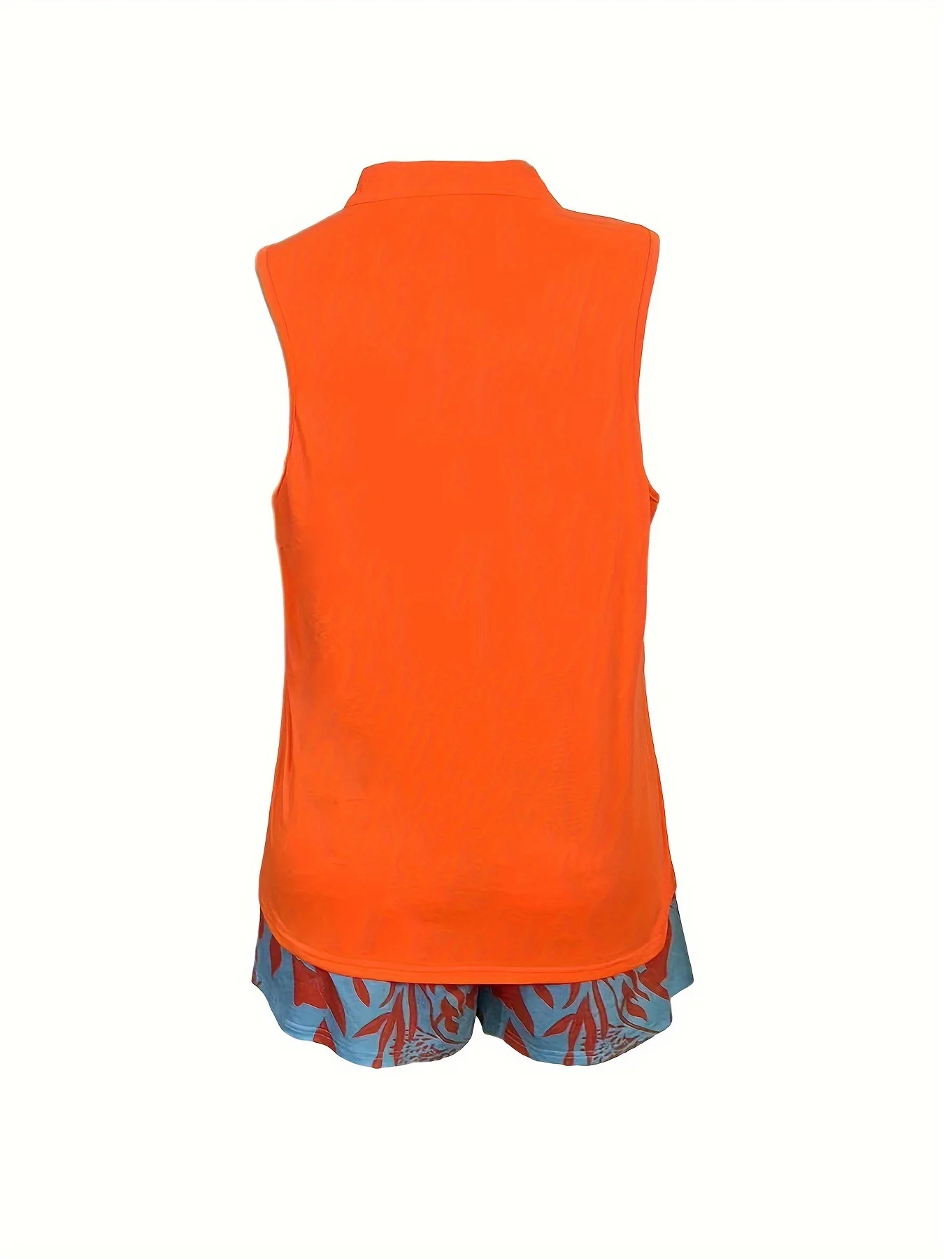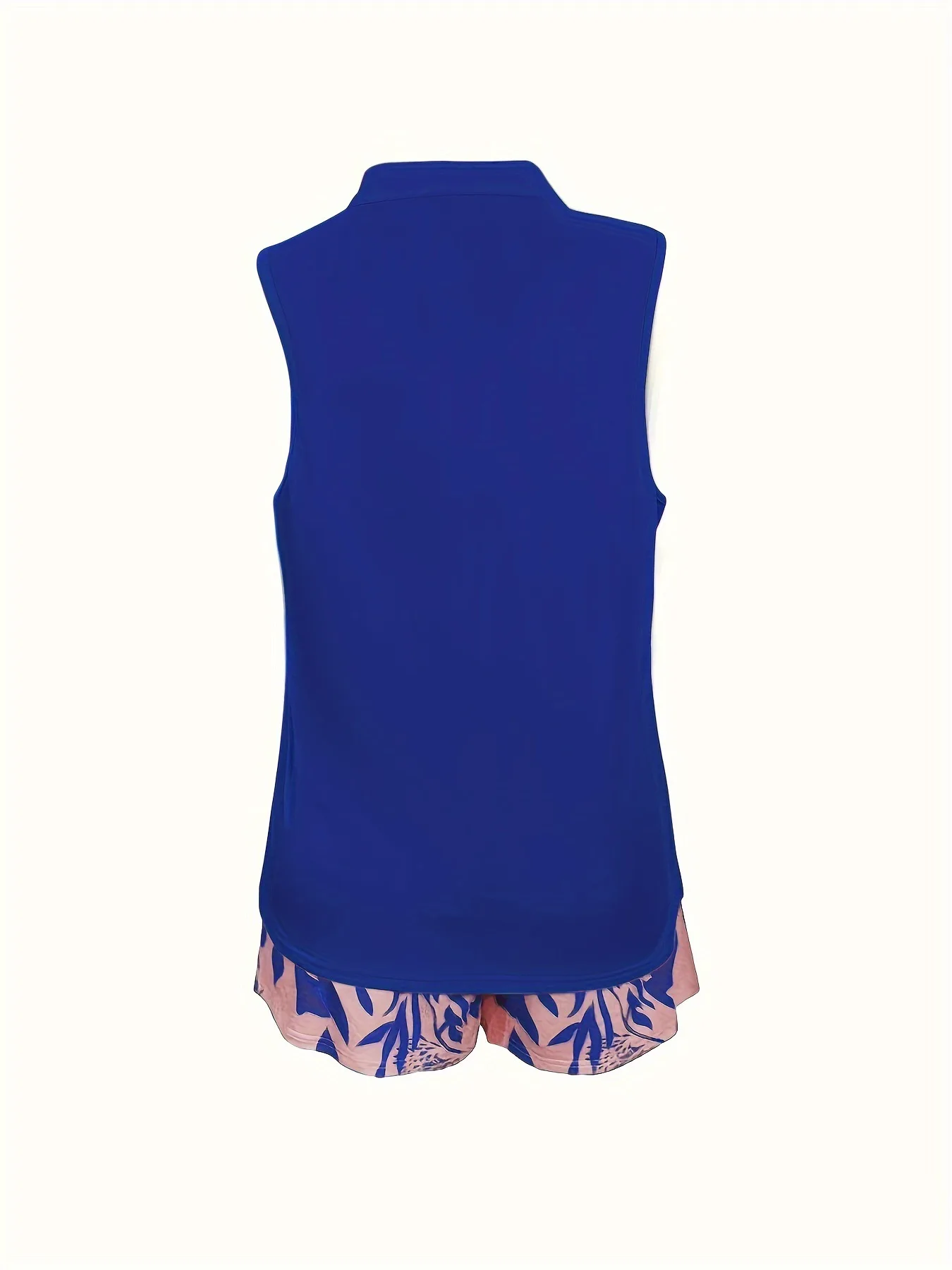 Summer Women Oversize Two-piece Vest And Shorts Set Fashion V-neck Top Tshirt 2 Piece Set Casual Print Sets 2024 New