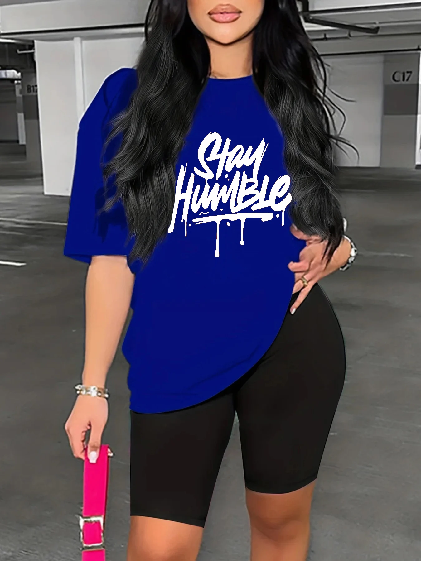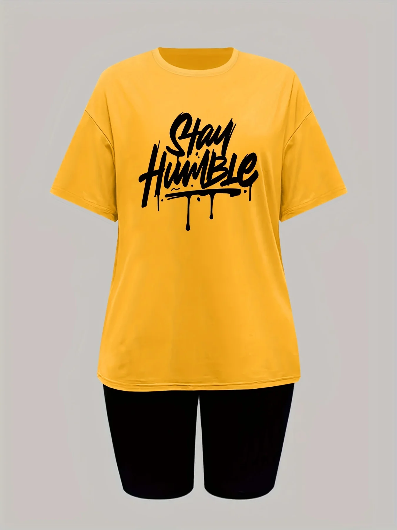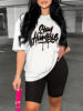 Summer women’s letter print casual loose round neck short sleeved T-shirt shorts two-piece set
