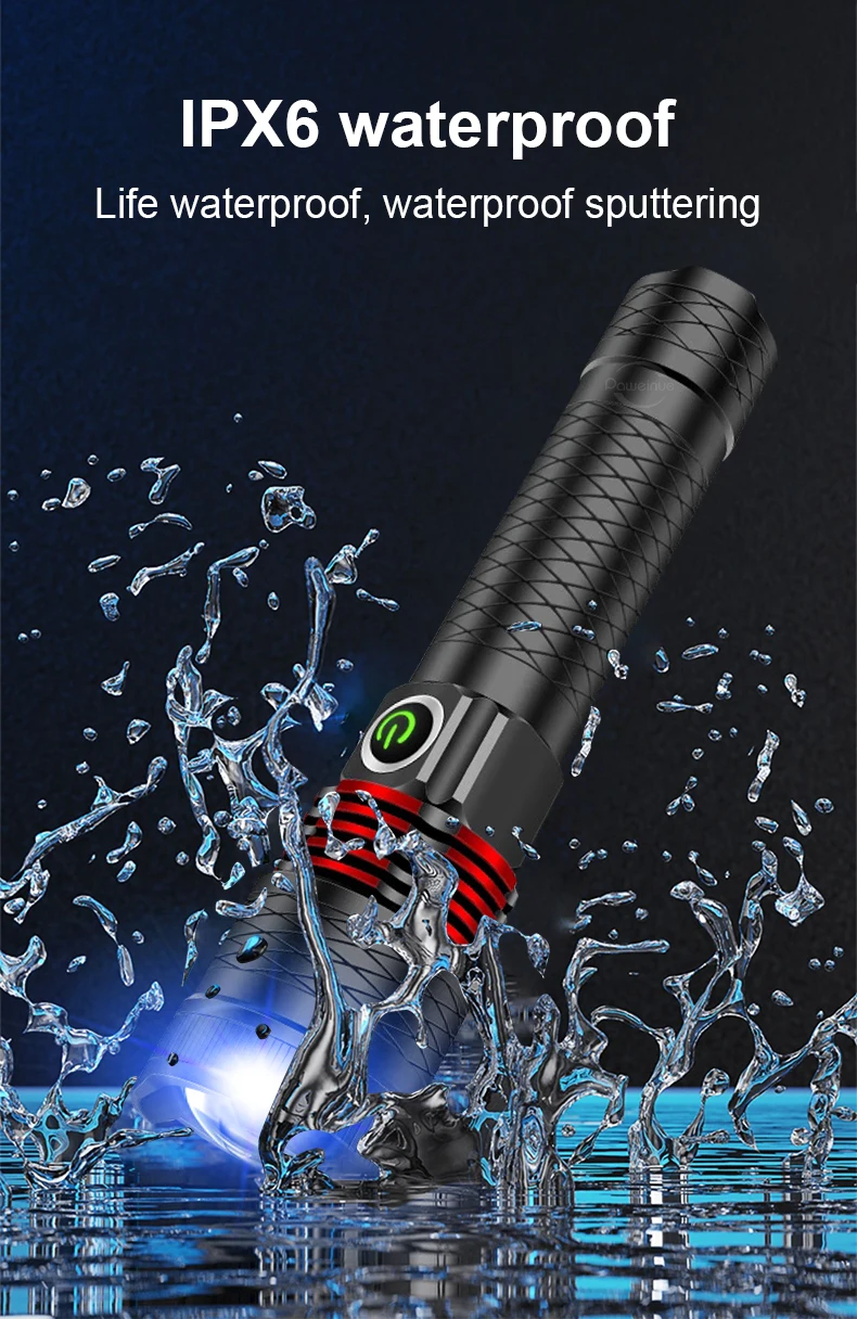 This flashlight is equipped with a white laser long range wick that can easily illuminate distances of more than 1500M. It is small and easy to carry. It is equipped with 18650 large-capacity battery, which can work continuously for more than 8 hours. The aluminum alloy material is not afraid of collision, and it can easily break the window and rescue in emergency.