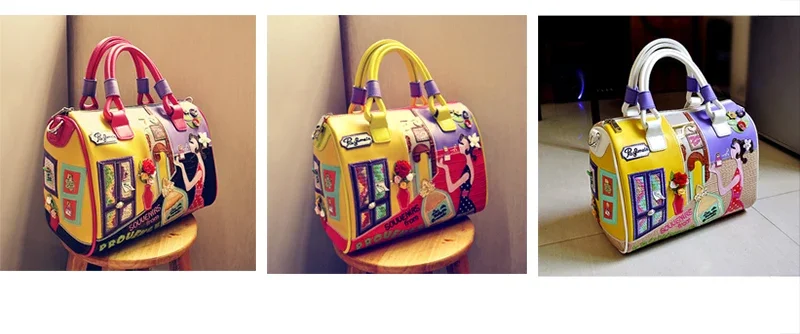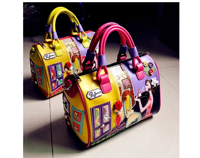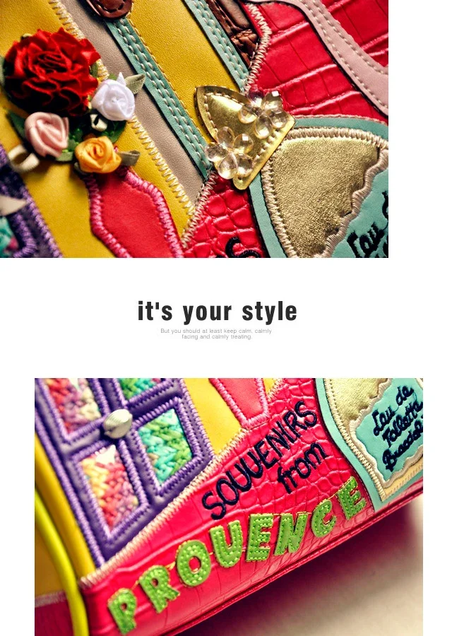 3 Colors.Top Quality Women’s Mixed Color Embroidery PU Shoulder Bag.Chic Candy Color Handbag.Lady Boston Bags.Bolsos Mujer