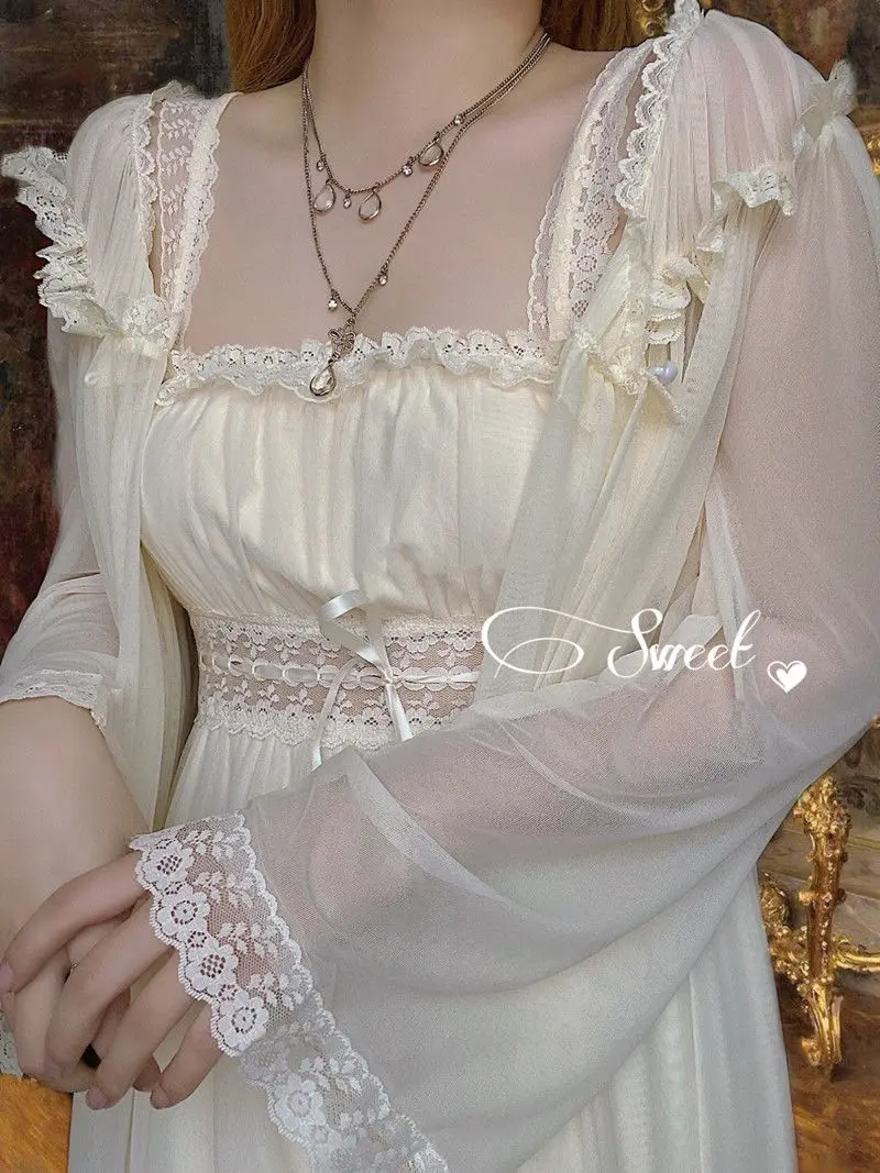 Sweet Vintage Fairy Dress Women 2022 Autumn Lace Sexy Patchwork Elegant Strap Dress Female Casual Korean Chiffon Mesh Long Dress