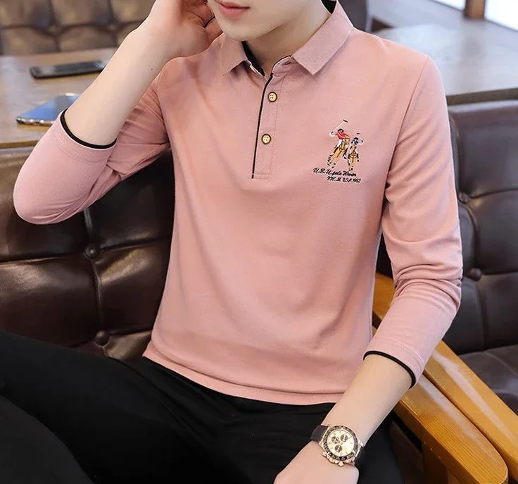 T Polo Shirts for Men High Quality Original Male Clothes Polyester Funny Elasticity Tops Long Sleeve Tee Xl Sale It Sweatshirts