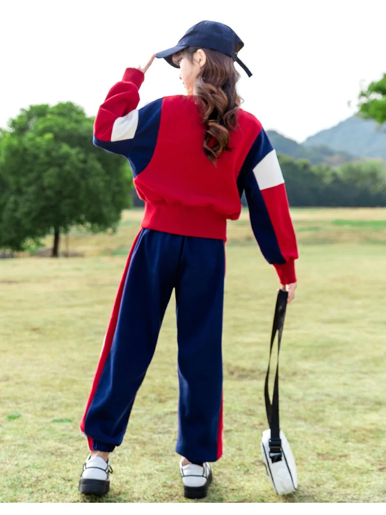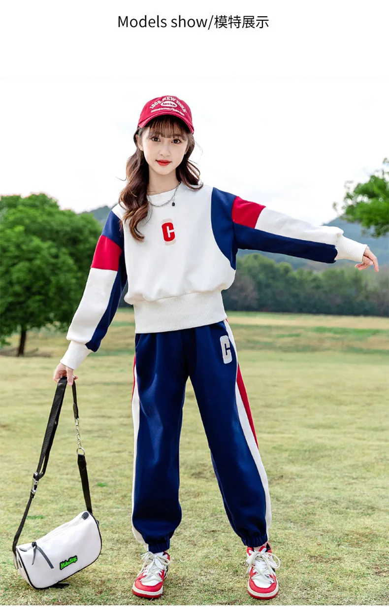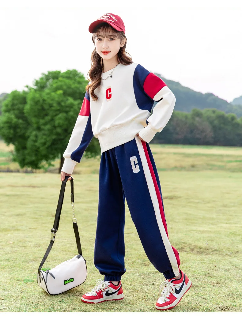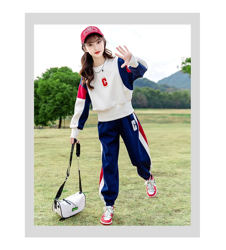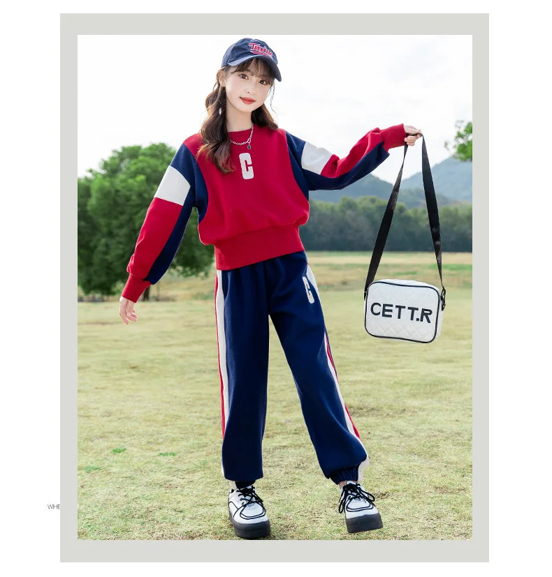 Teenagers Girls Clothing Set Spring Autumn Patchwork Letter Print Fashion Sweatshirt+Pants 2Pcs For 5-14Y Kids Casual Outfit