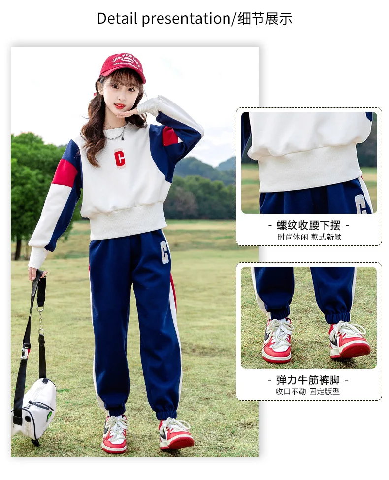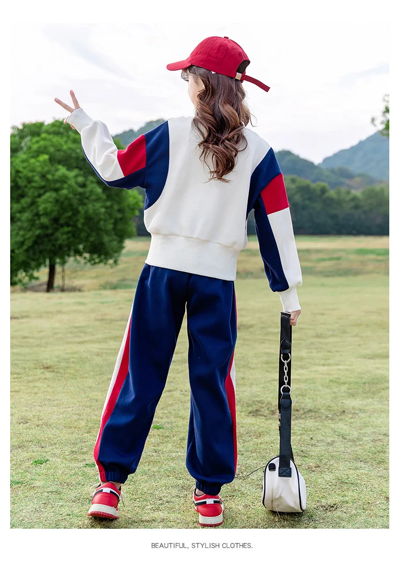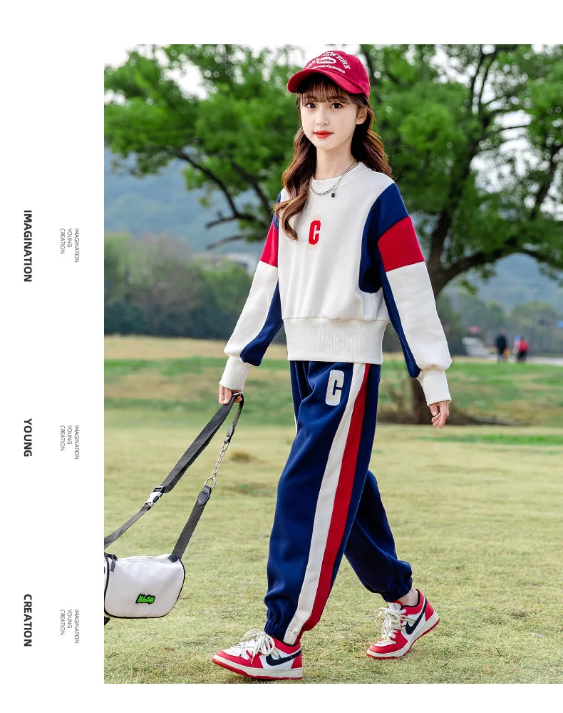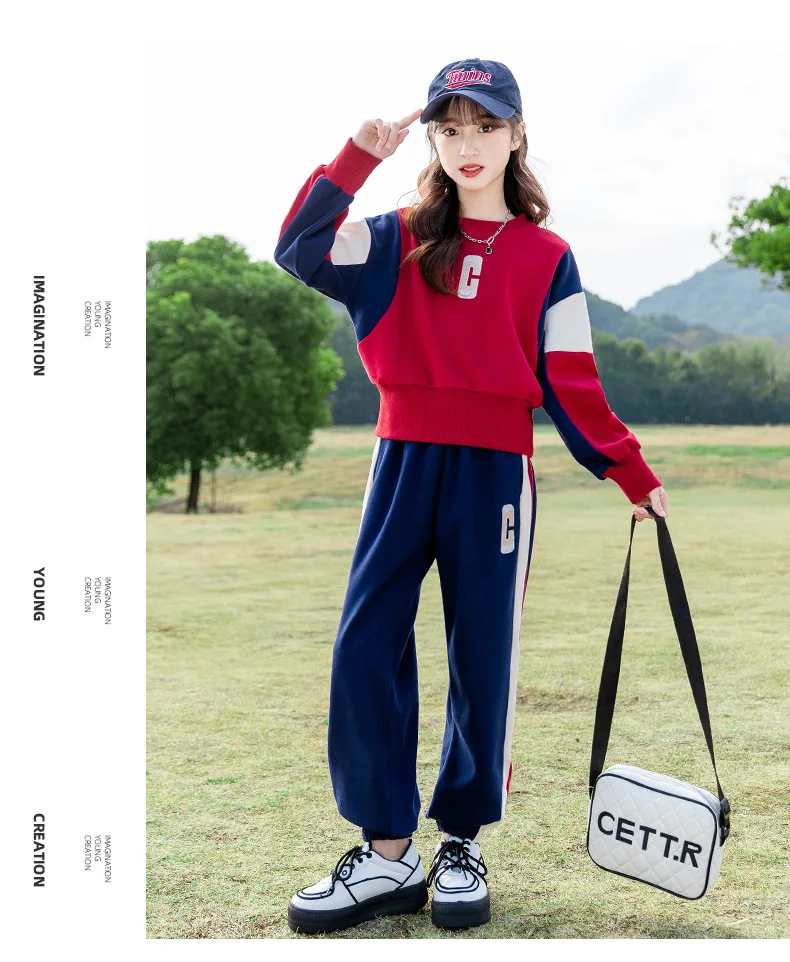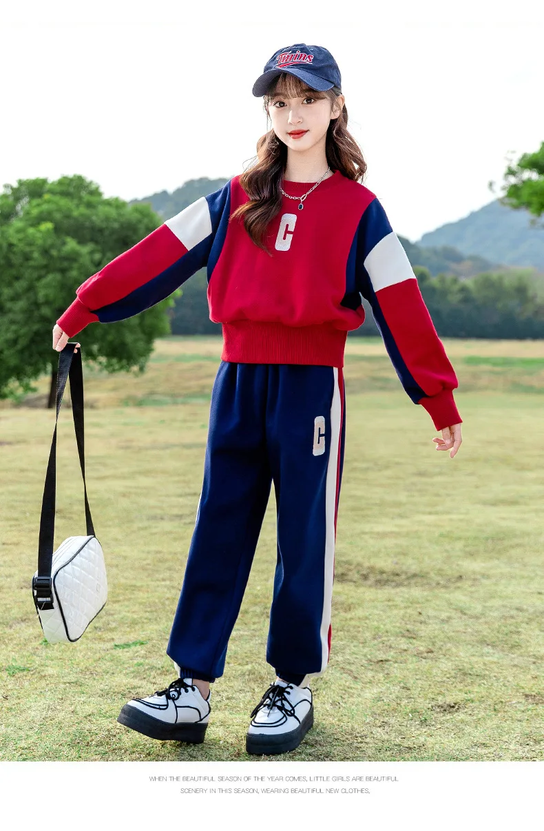 Teenagers Girls Clothing Set Spring Autumn Patchwork Letter Print Fashion Sweatshirt+Pants 2Pcs For 5-14Y Kids Casual Outfit