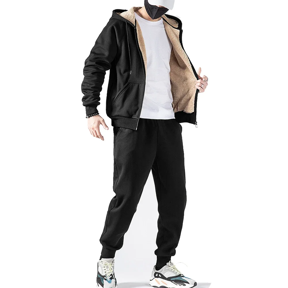 Thicken Hoodies Winter Warm Sportsuit Men Hooded Running Sets Women Fleece Jacket Pants Windproof Loose Sportswear 1/2 Pics/Set